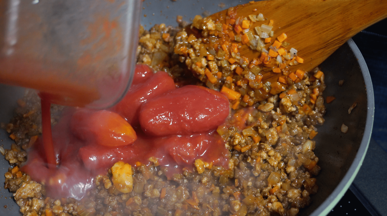 이제 홀토마토를 넣어 으깨주며 볶아줄게요.