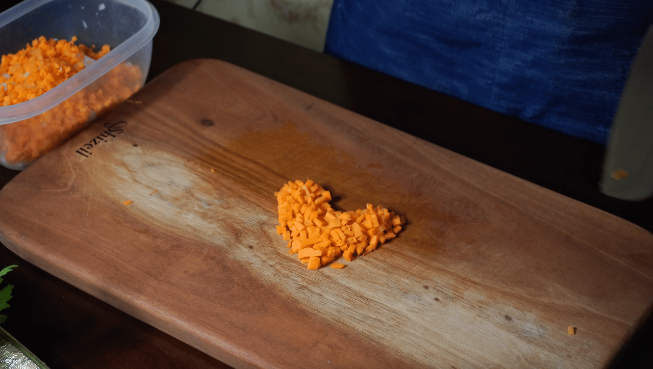 당근도 양파와 비슷한 크기로 최대한 잘게 다져주세요.