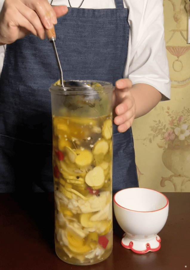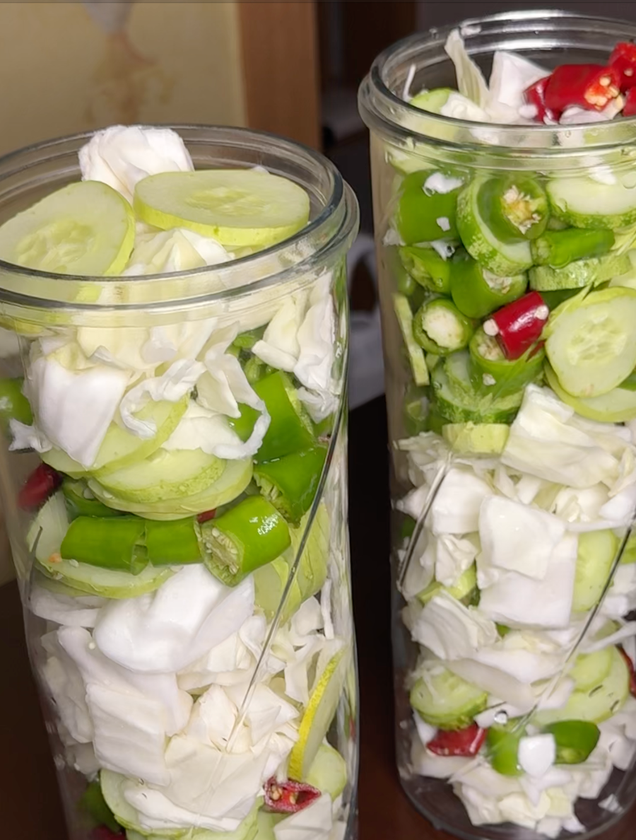 준비한 피클 물이 많다고 느껴지면 야채를 더 썰어서 넣어주세요.