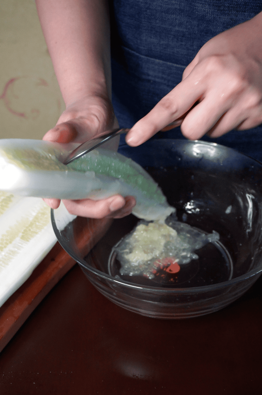 숟가락으로 씨를 긁어내고 제거해줍니다.