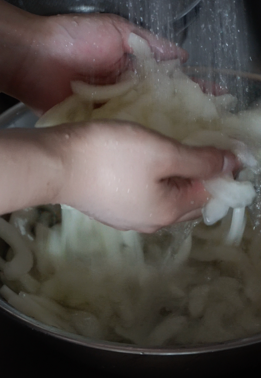 30분 후, 흐르는 물에 헹군 다음 면포나 키친타월로 꼭 짜서 물기를 제거해 주세요.