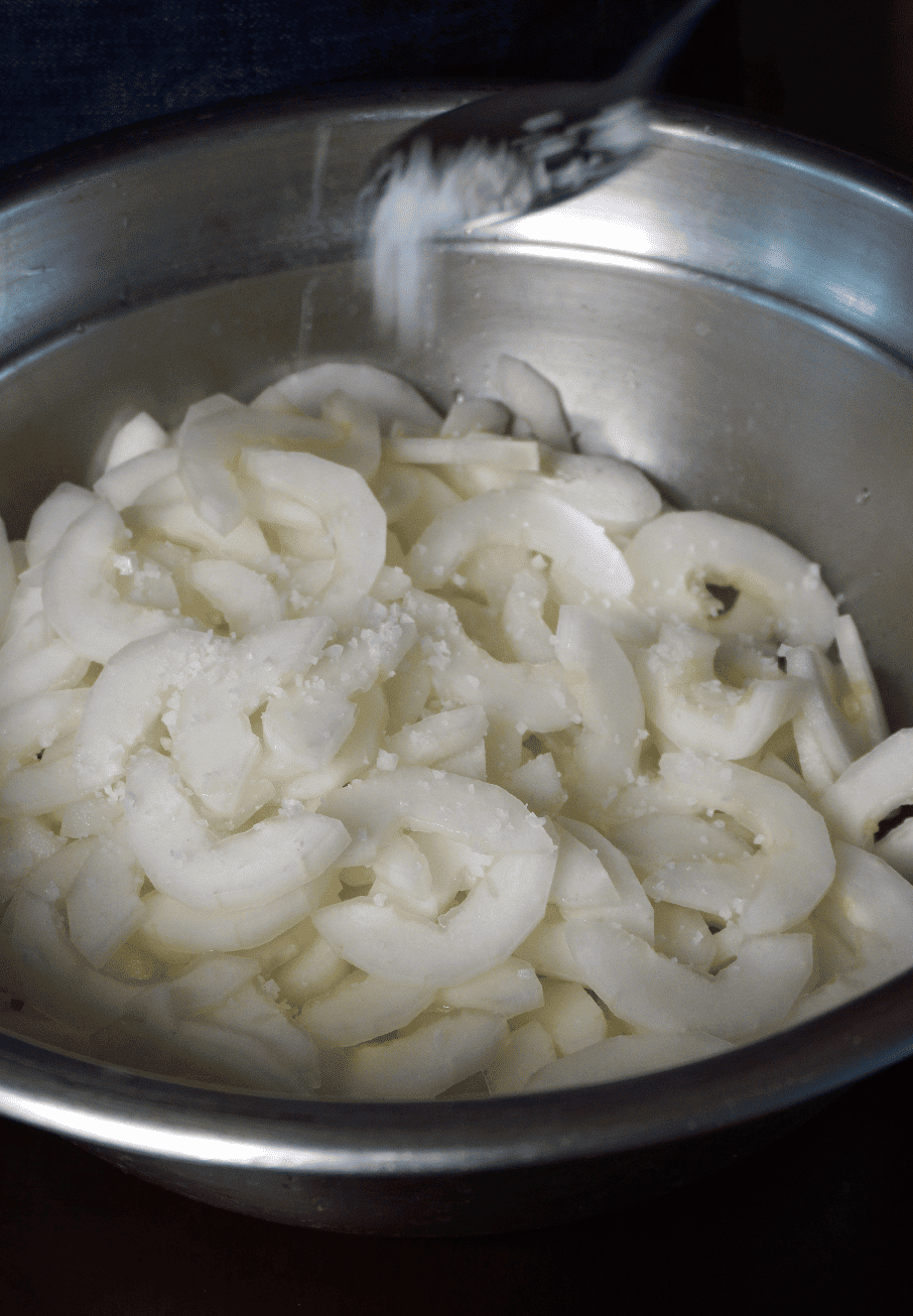 썬 노각에 굵은소금 1큰술을 넣고 잘 섞은 뒤 30분 정도 절여 수분을 빼줍니다.