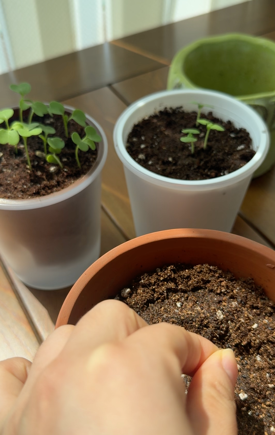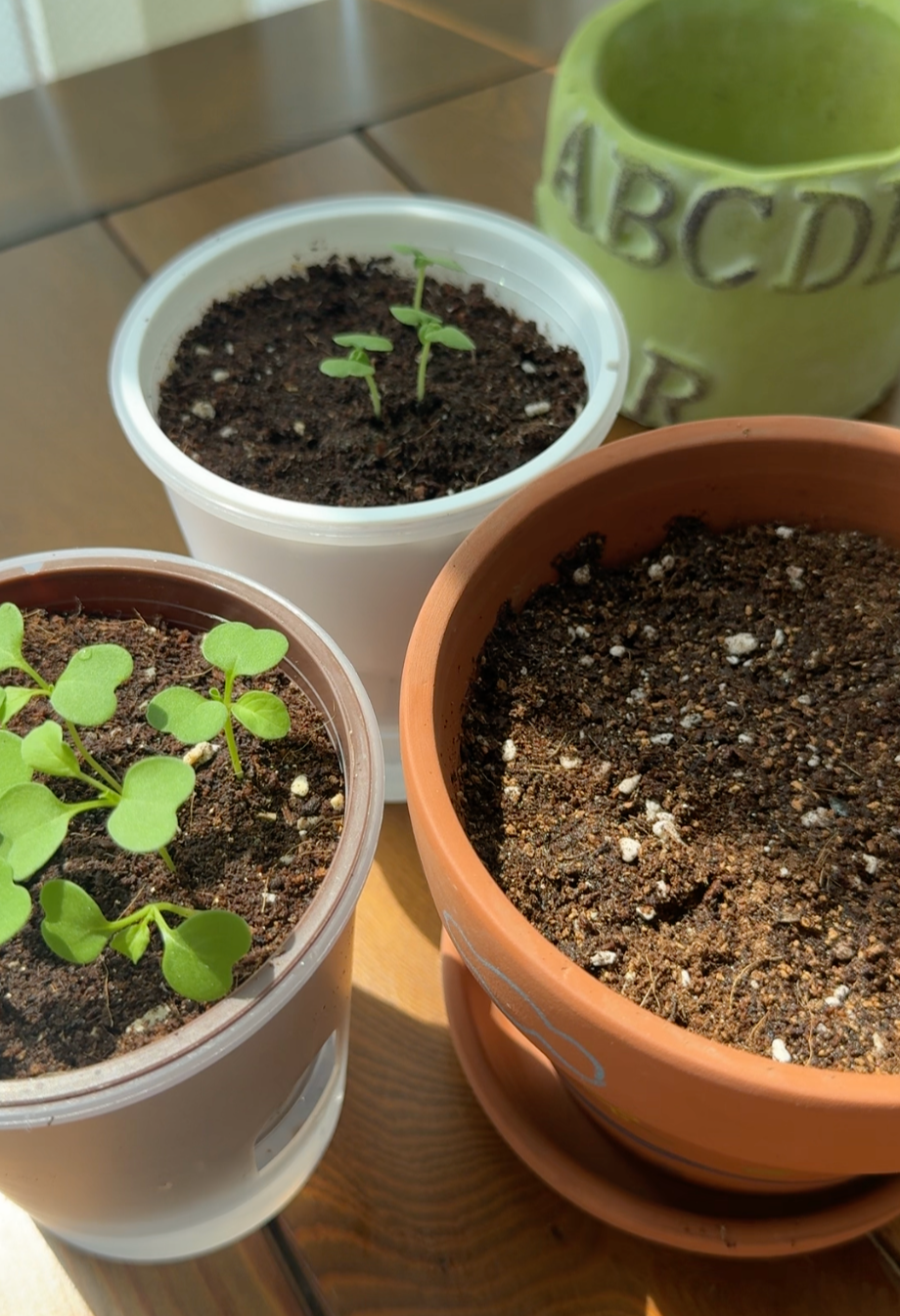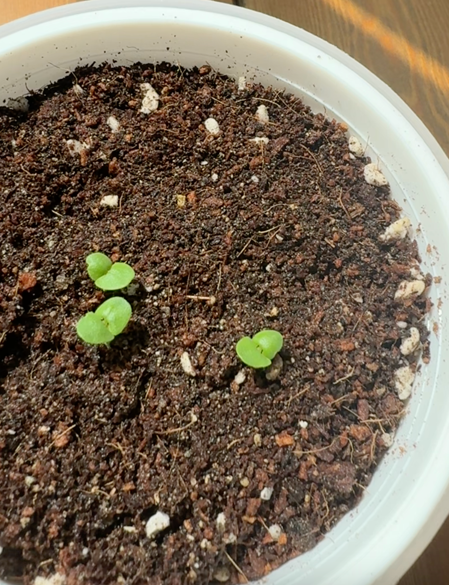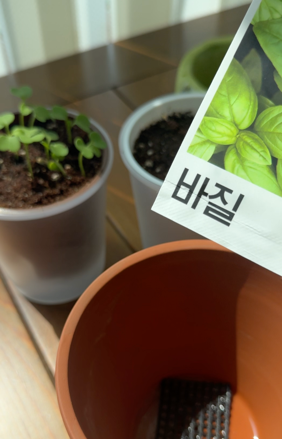 (바질의 싹이 세 개 밖에 나지 않아 아쉬워 씨앗을 더 심어야겠다고 생각했다..ㅎㅎ)