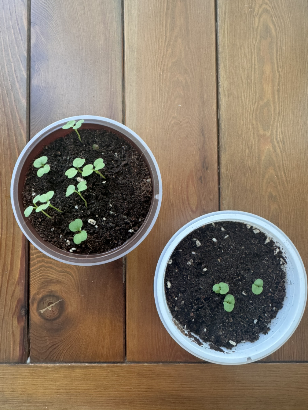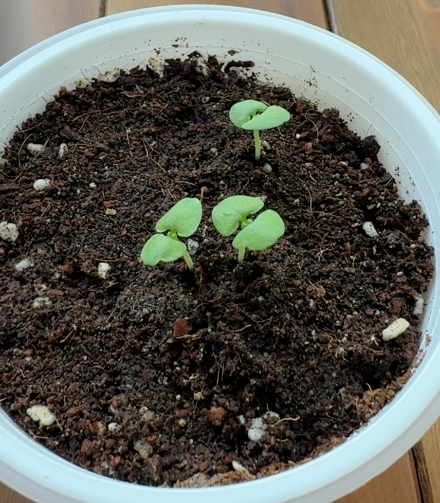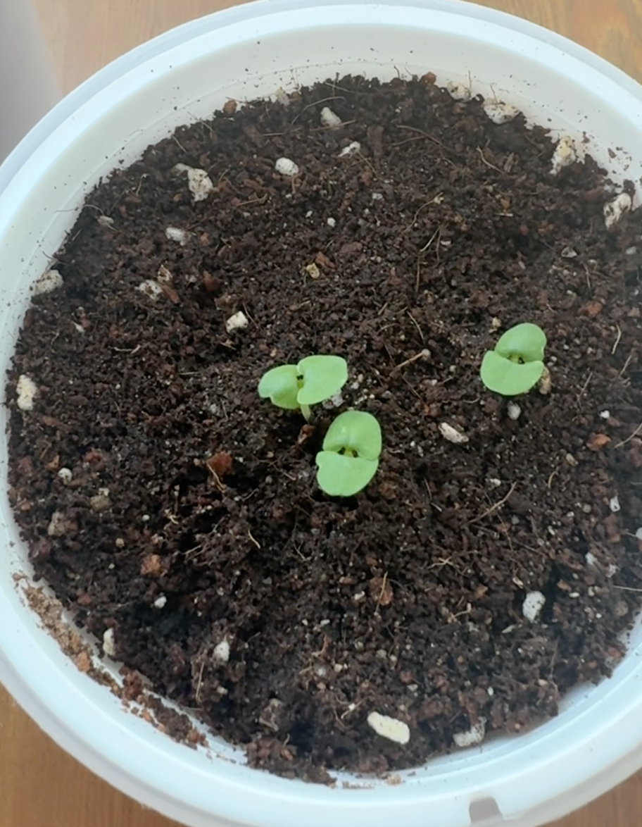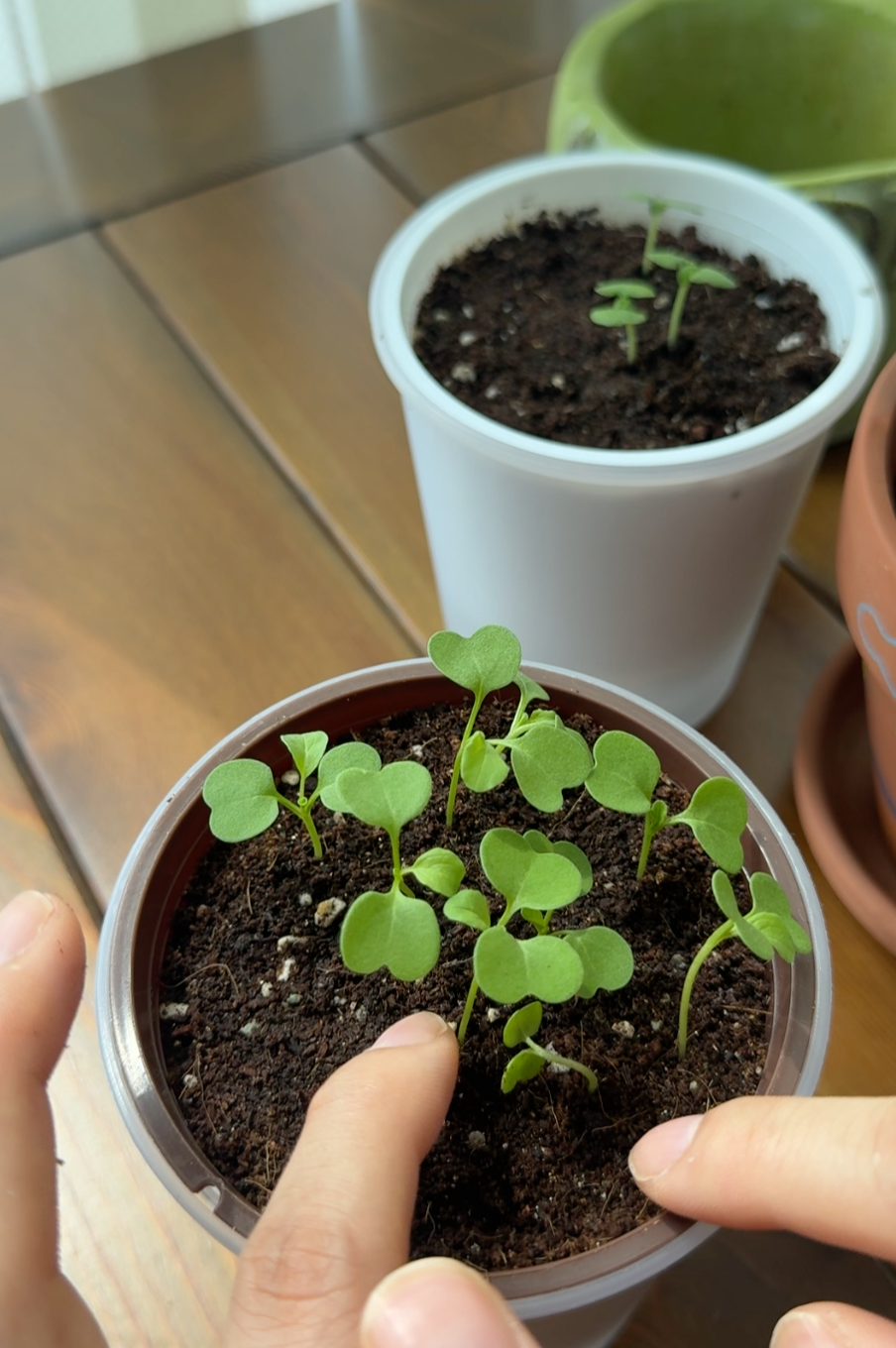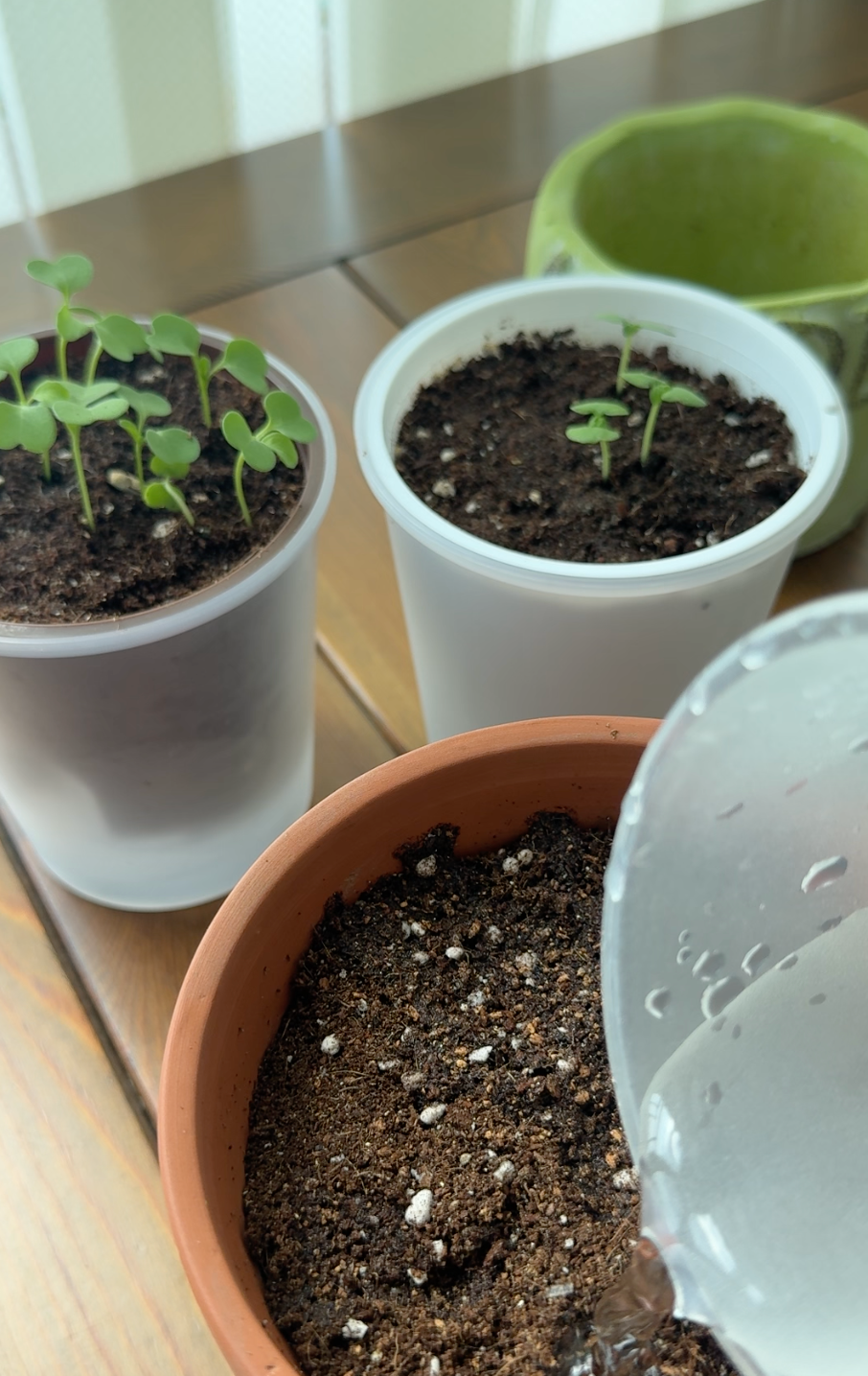(바질의 싹이 세 개 밖에 나지 않아 아쉬워 씨앗을 더 심어야겠다고 생각했다..ㅎㅎ)