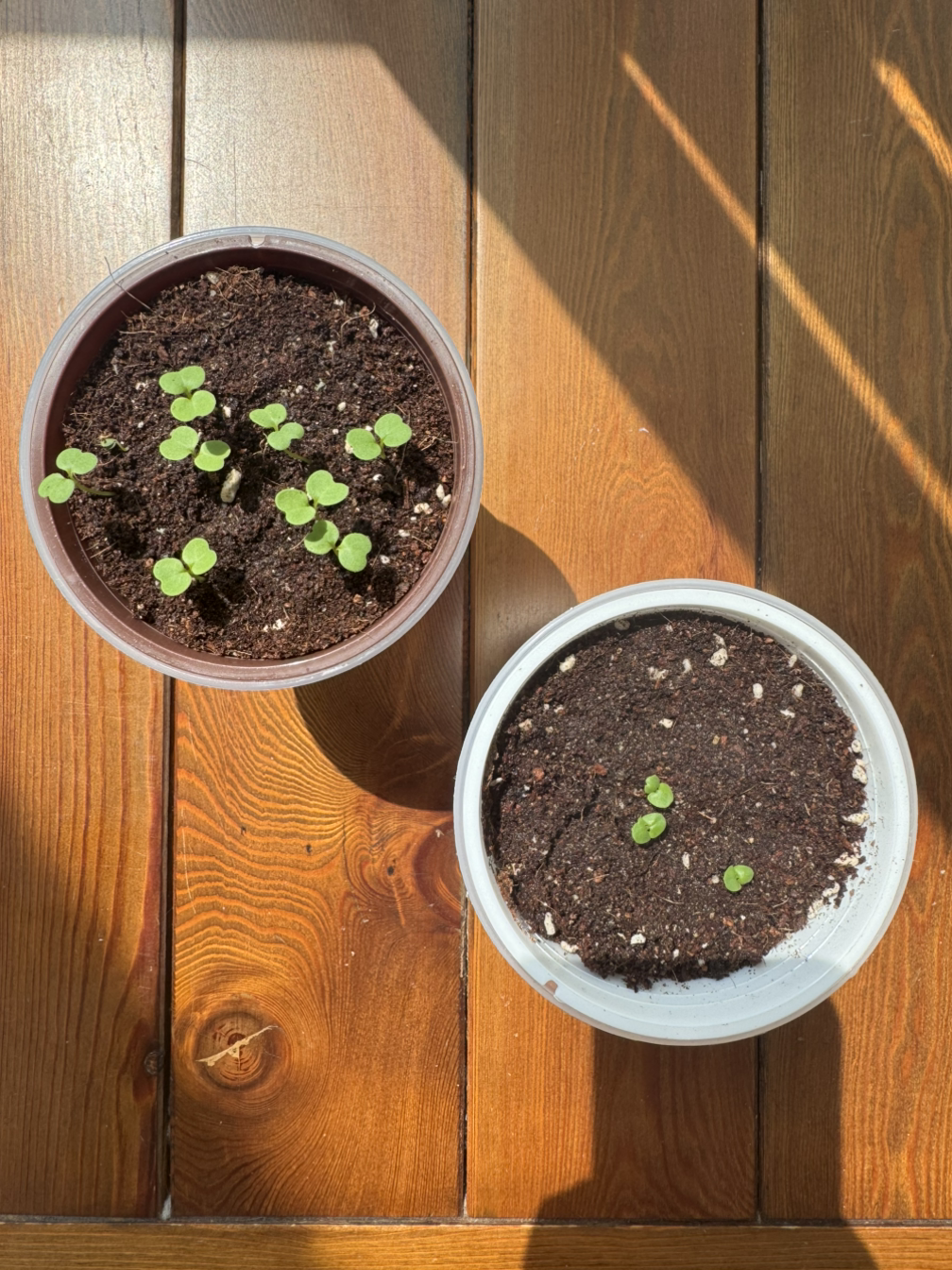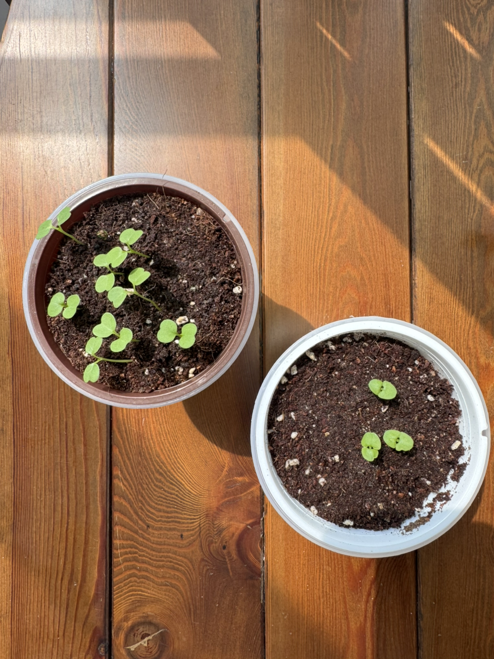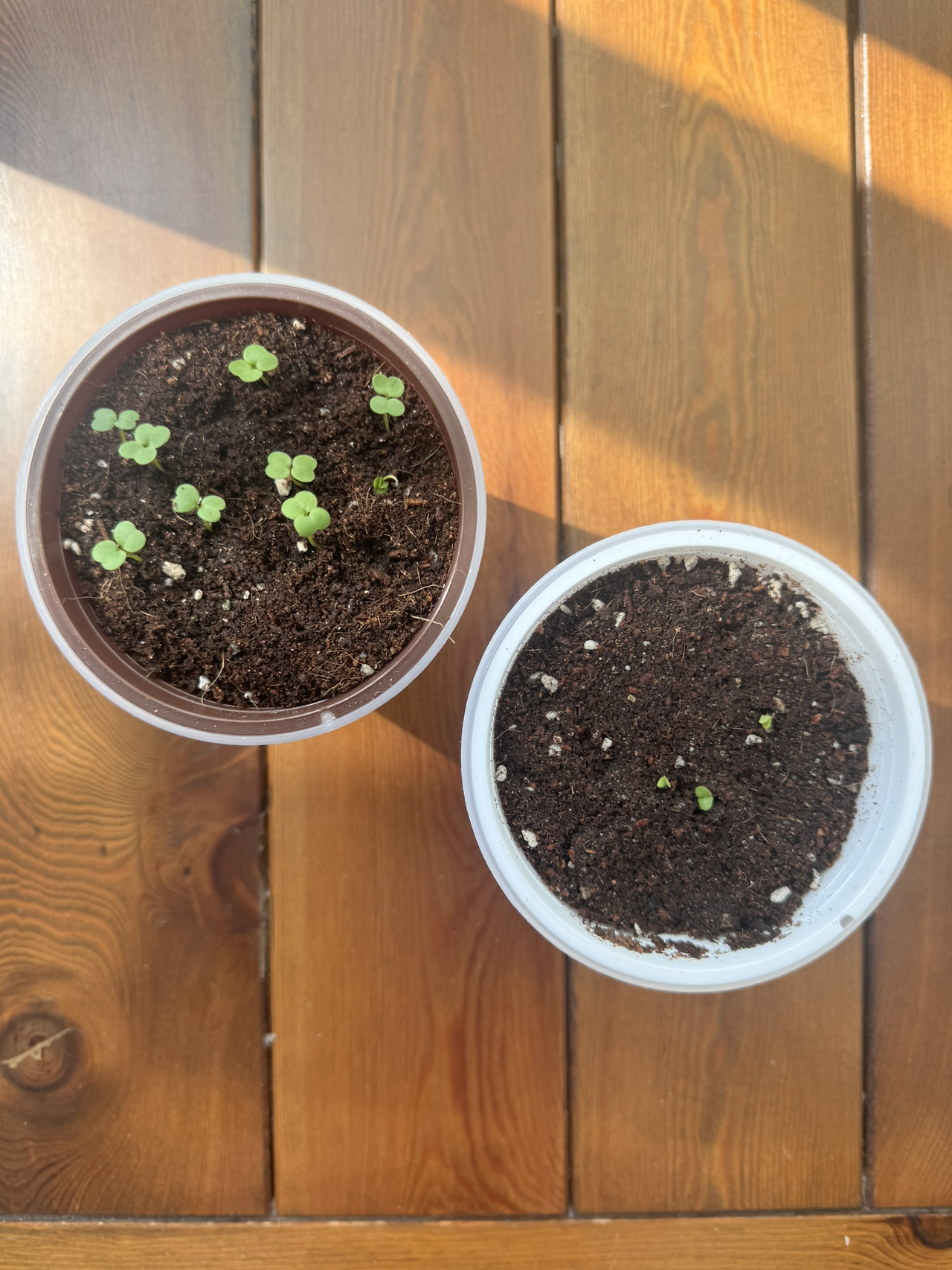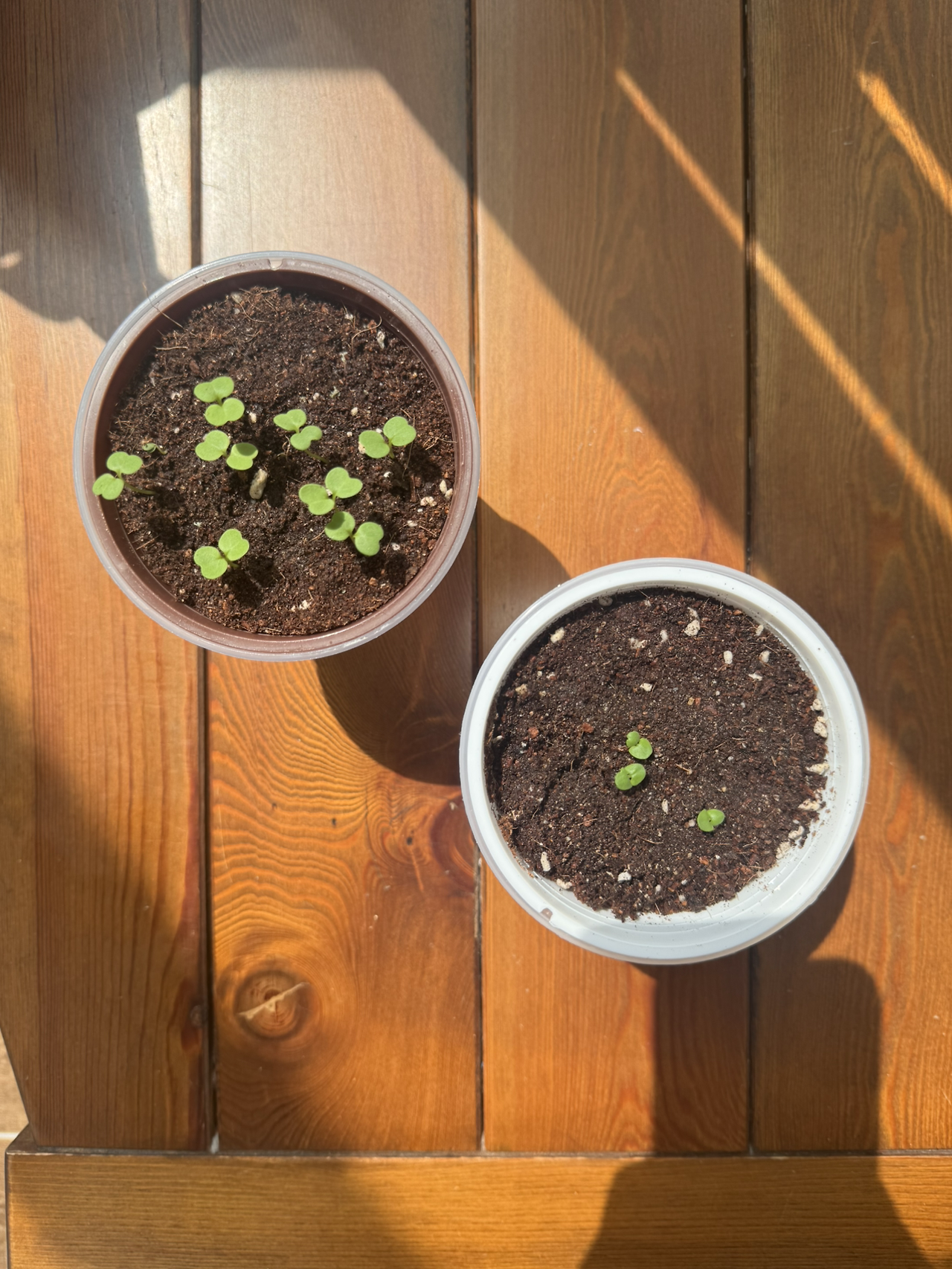 (바질의 싹이 세 개 밖에 나지 않아 아쉬워 씨앗을 더 심어야겠다고 생각했다..ㅎㅎ)