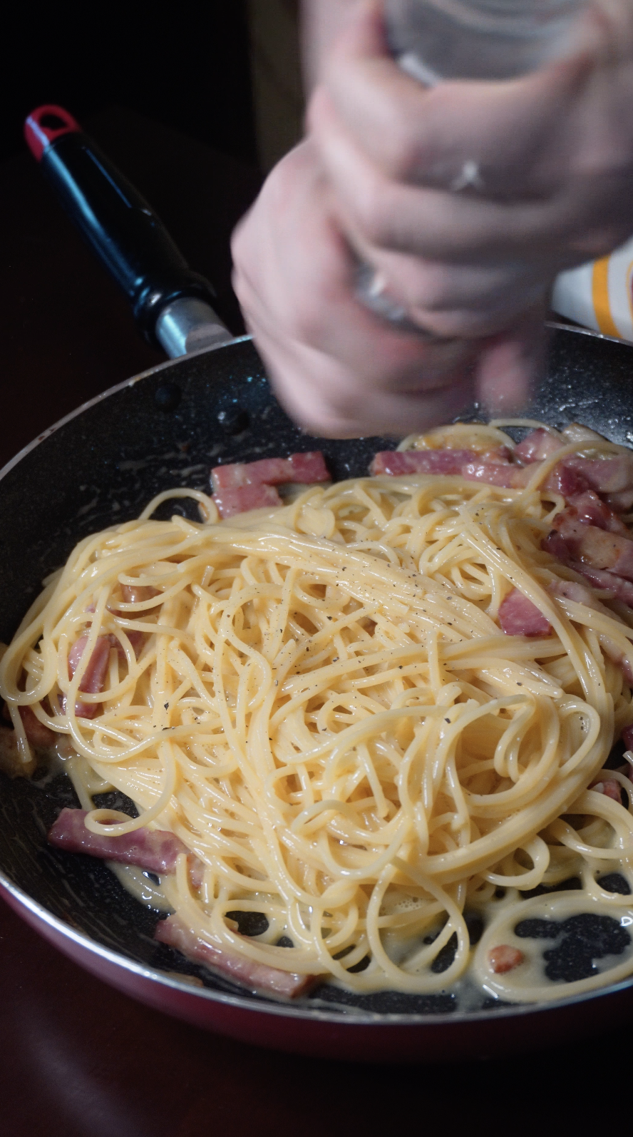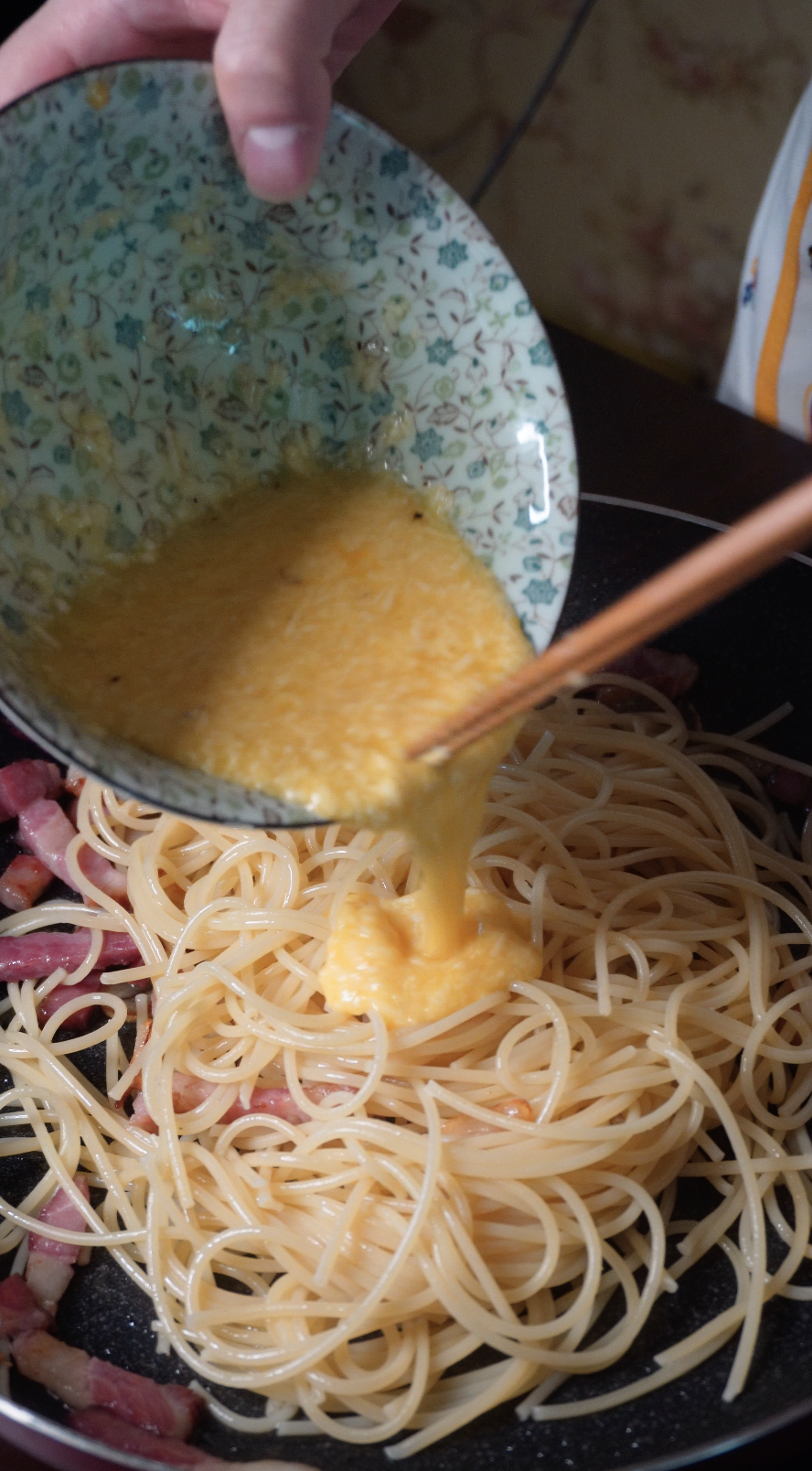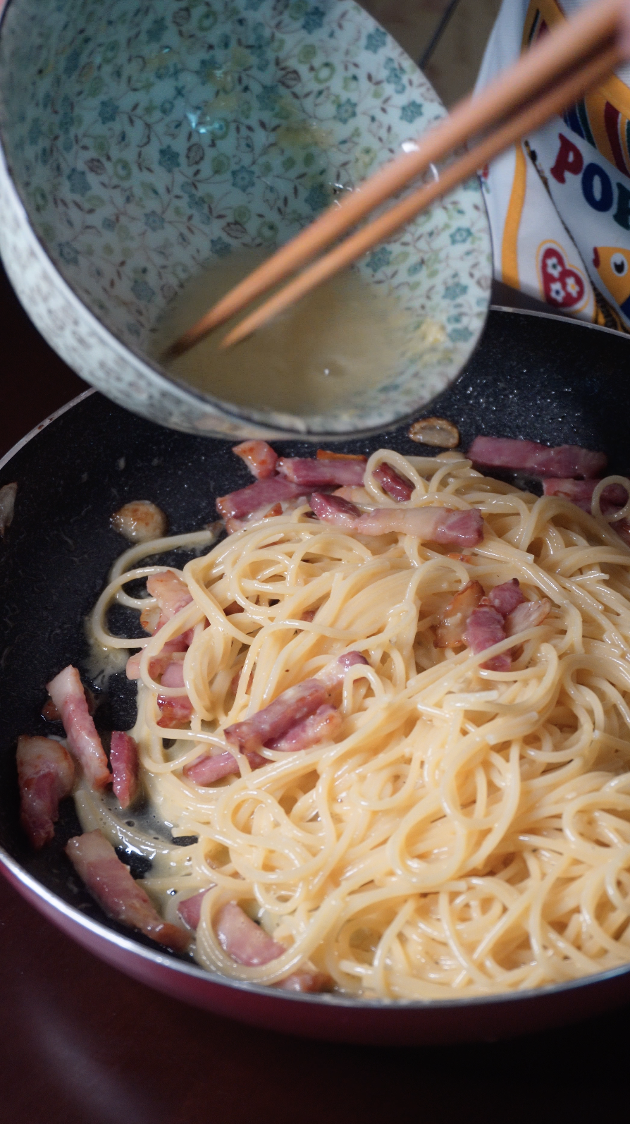 달걀 소스가 면에 부드럽게 감싸며, 크리미한 느낌이 살아납니다.