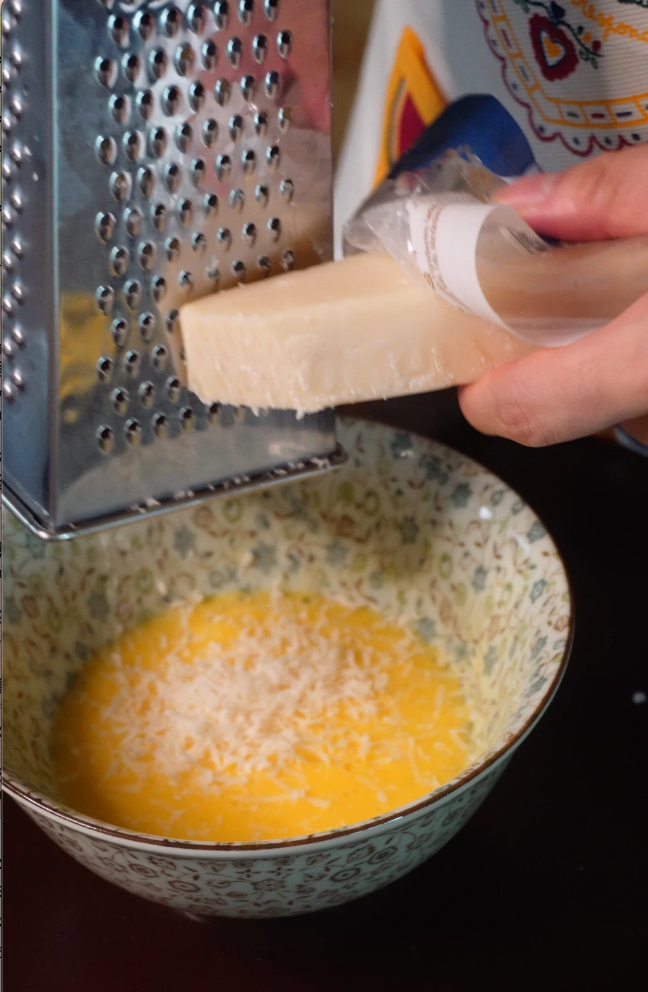 *원래는 페코리노 로마노(Pecorino Romano) 치즈로 만들지만 구하기 쉬운 파르미지아노 치즈로 사용했어요.