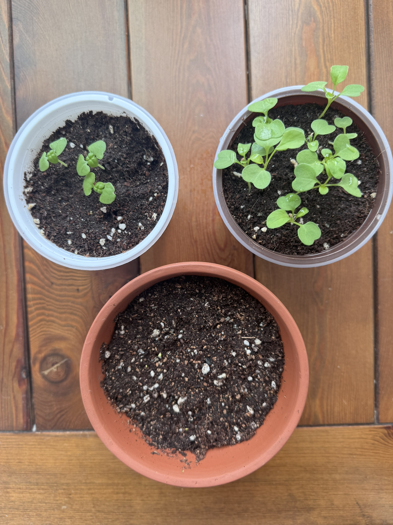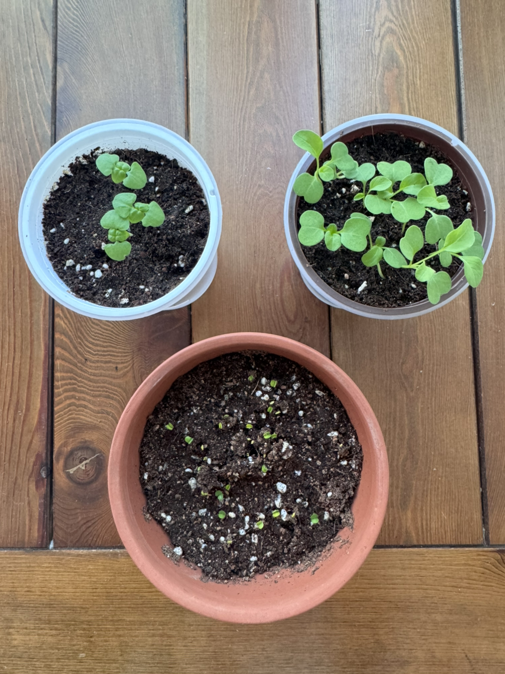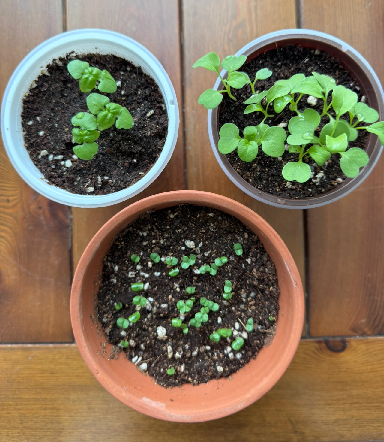 신기하게도, 평평하던 흙바닥이 살짝 부풀어 올랐다. 조심스레 들춰보니 그 바로 아래에서 작은 새싹이 힘껏 머리를 내밀며 흙을 밀어내고 있었다. 나는 숟가락으로 흙을 살짝 걷어주며, 새싹들이 올라올 수 있도록 했다.