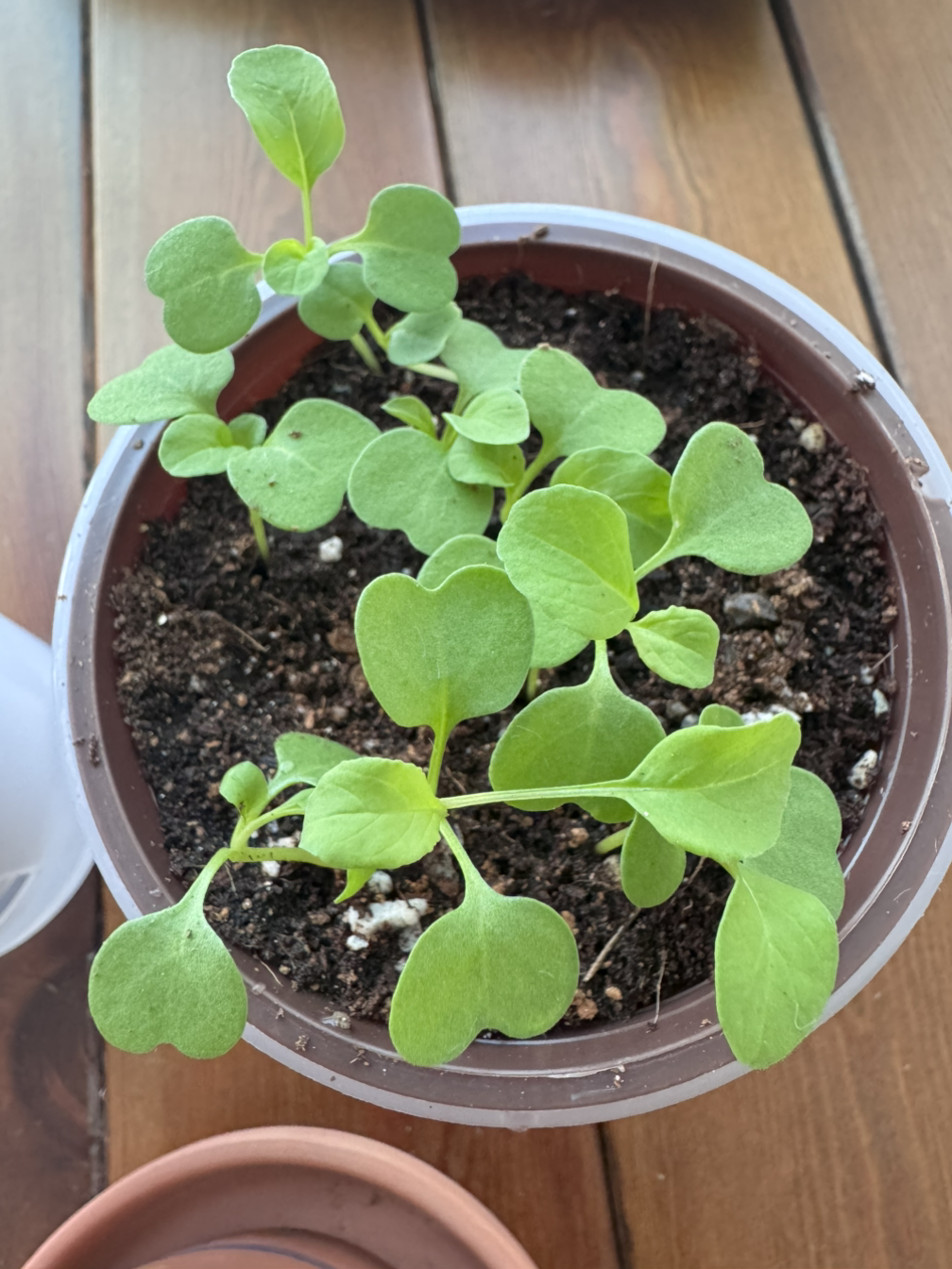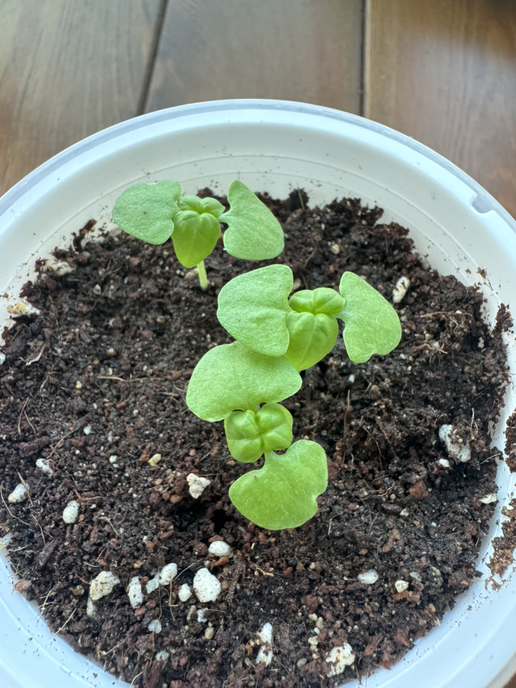 새로 심은 바질 화분에서 아기 싹 두 개가 빼꼼 올라왔다.