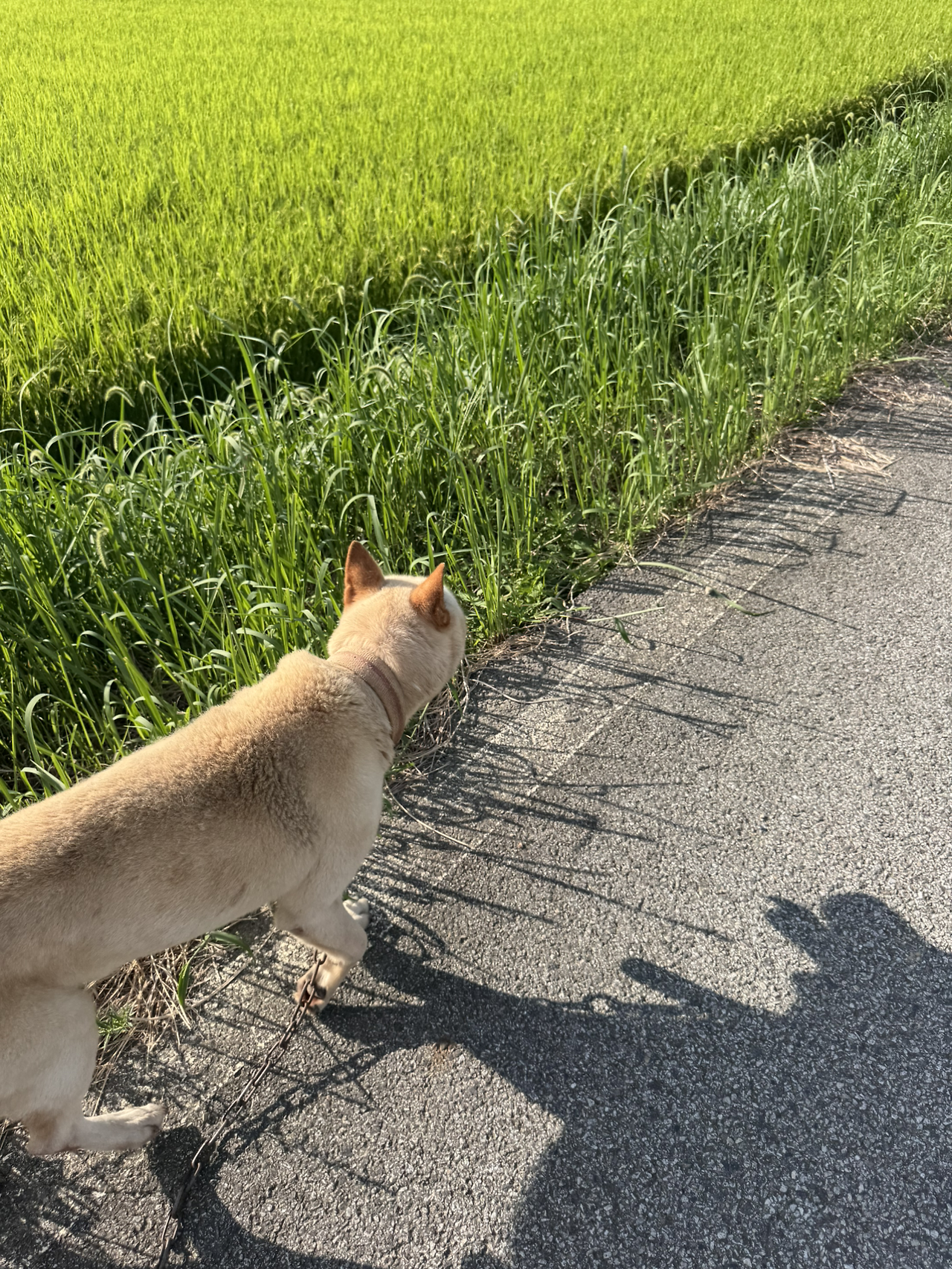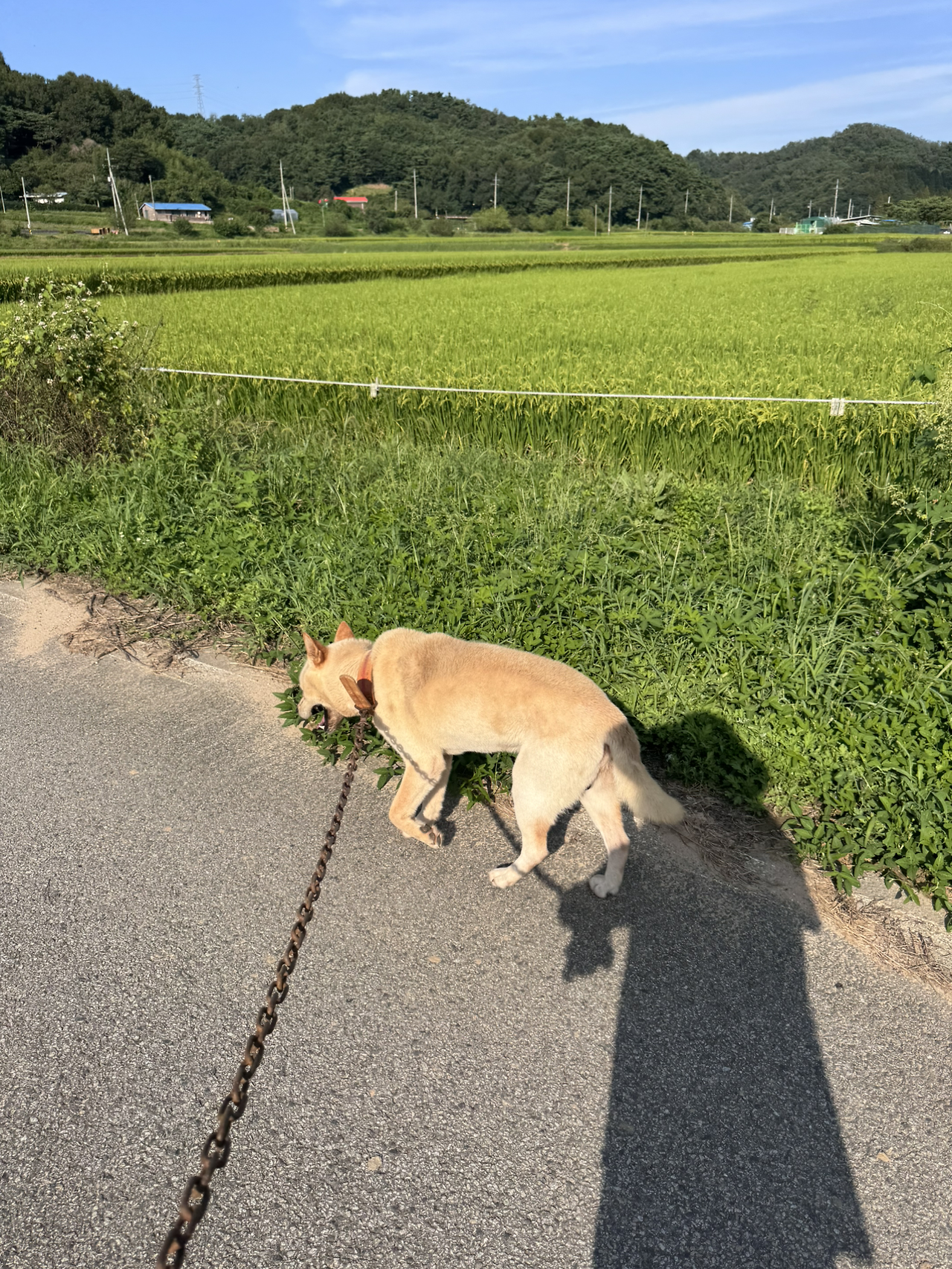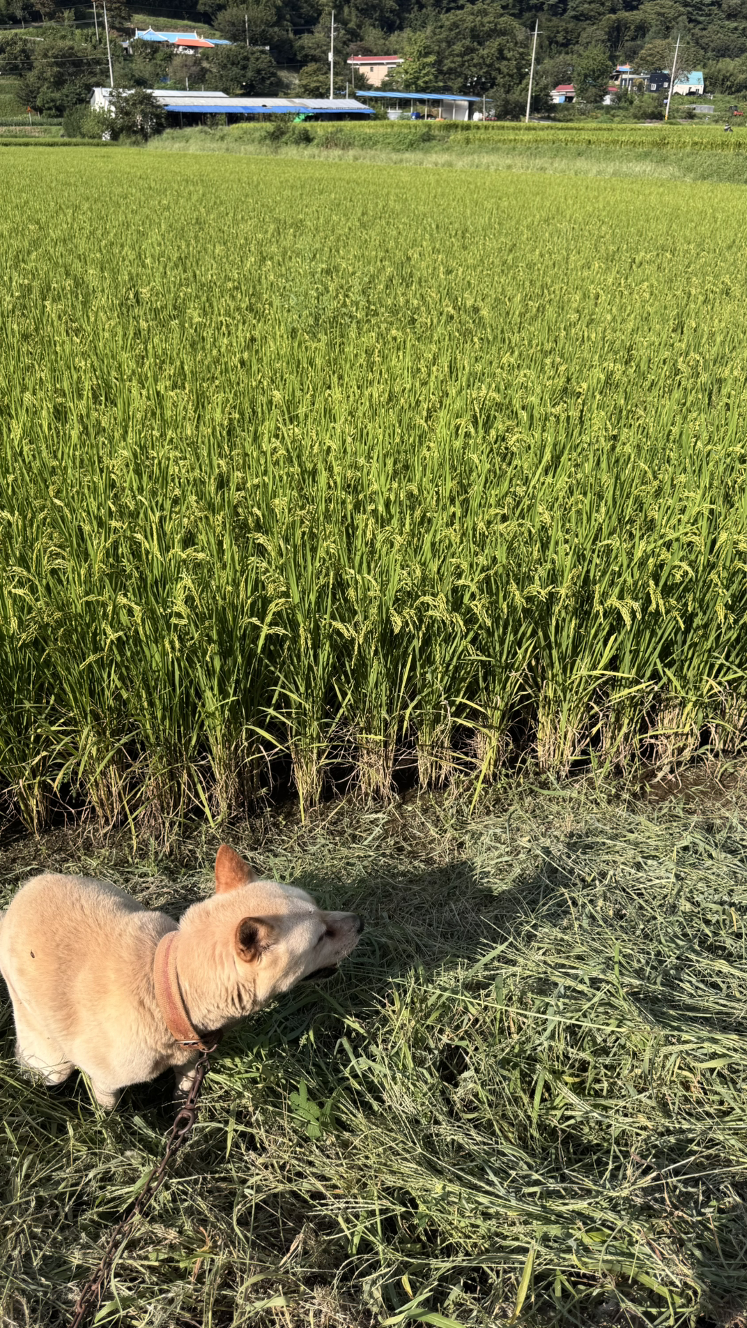 백구와 산책 중, 논밭이 눈에 들어왔다.