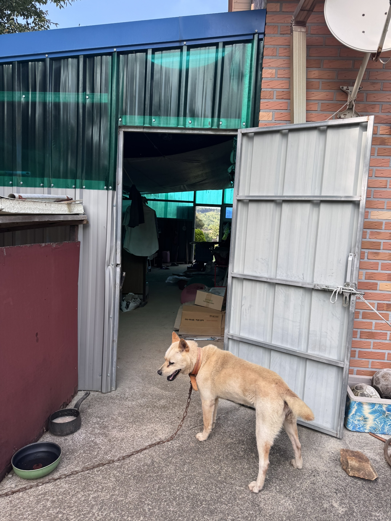 할아버지께서 백구가 계속 묶여 있어 기운이 없어 보인다며 걱정하셨다.