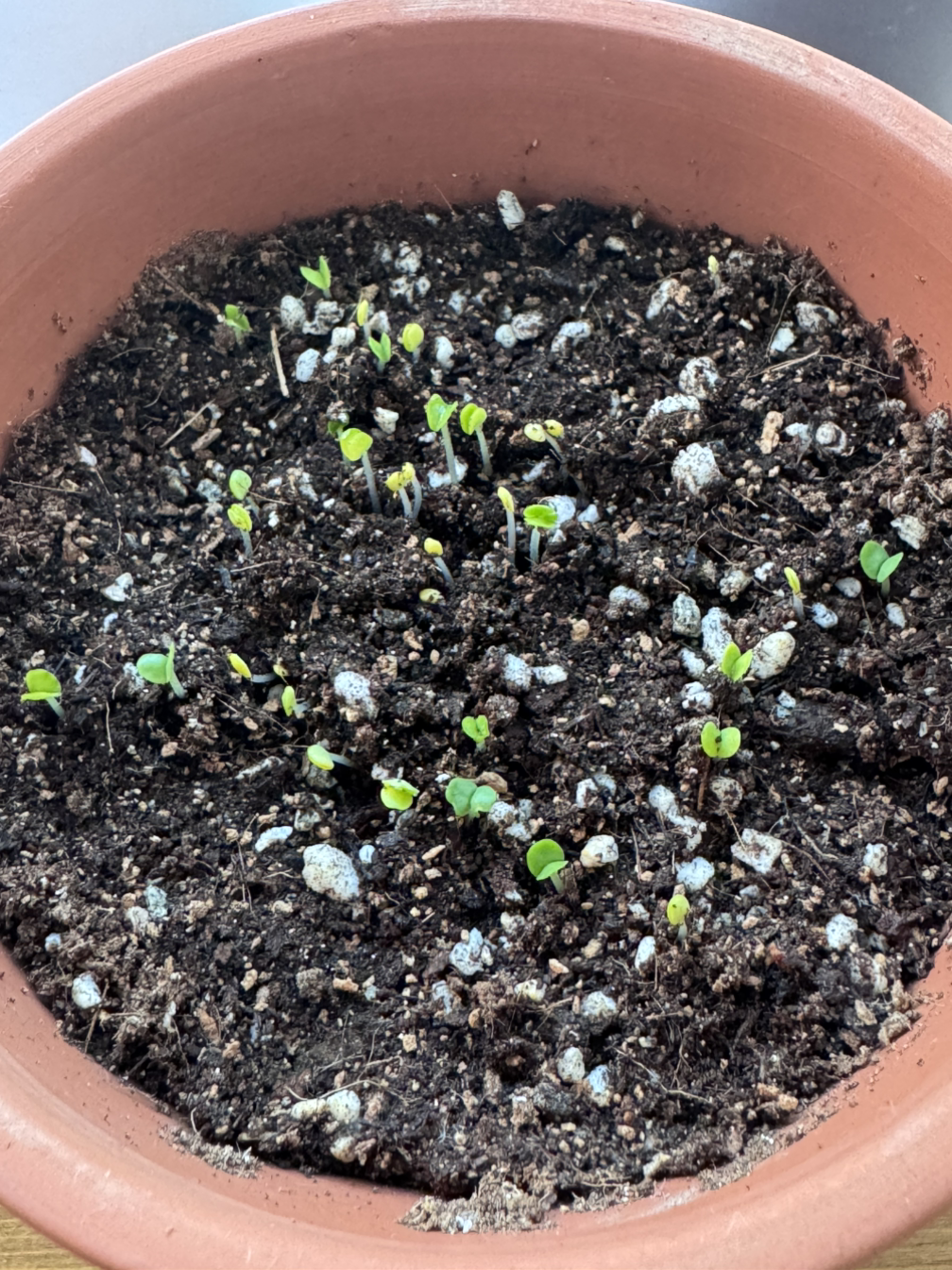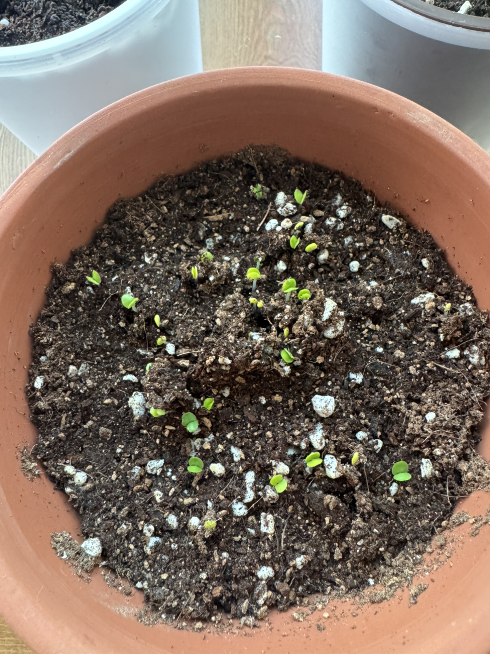 밤새 뒤척이다 새벽에 일어났다. 일어난 김에 슬쩍 화분을 들여다봤는데, 세상에.. 작은 싹들이 잔뜩 올라와 있었다. 웃음은 덤