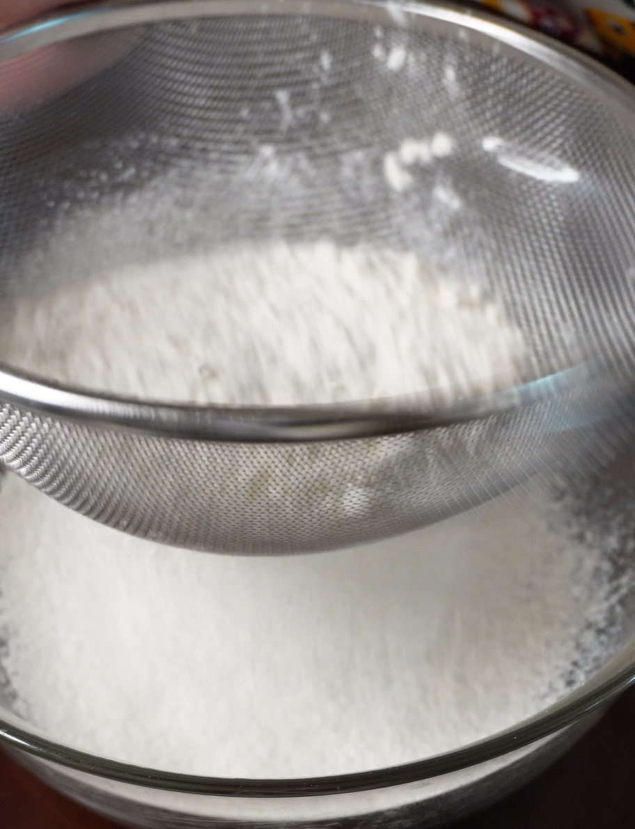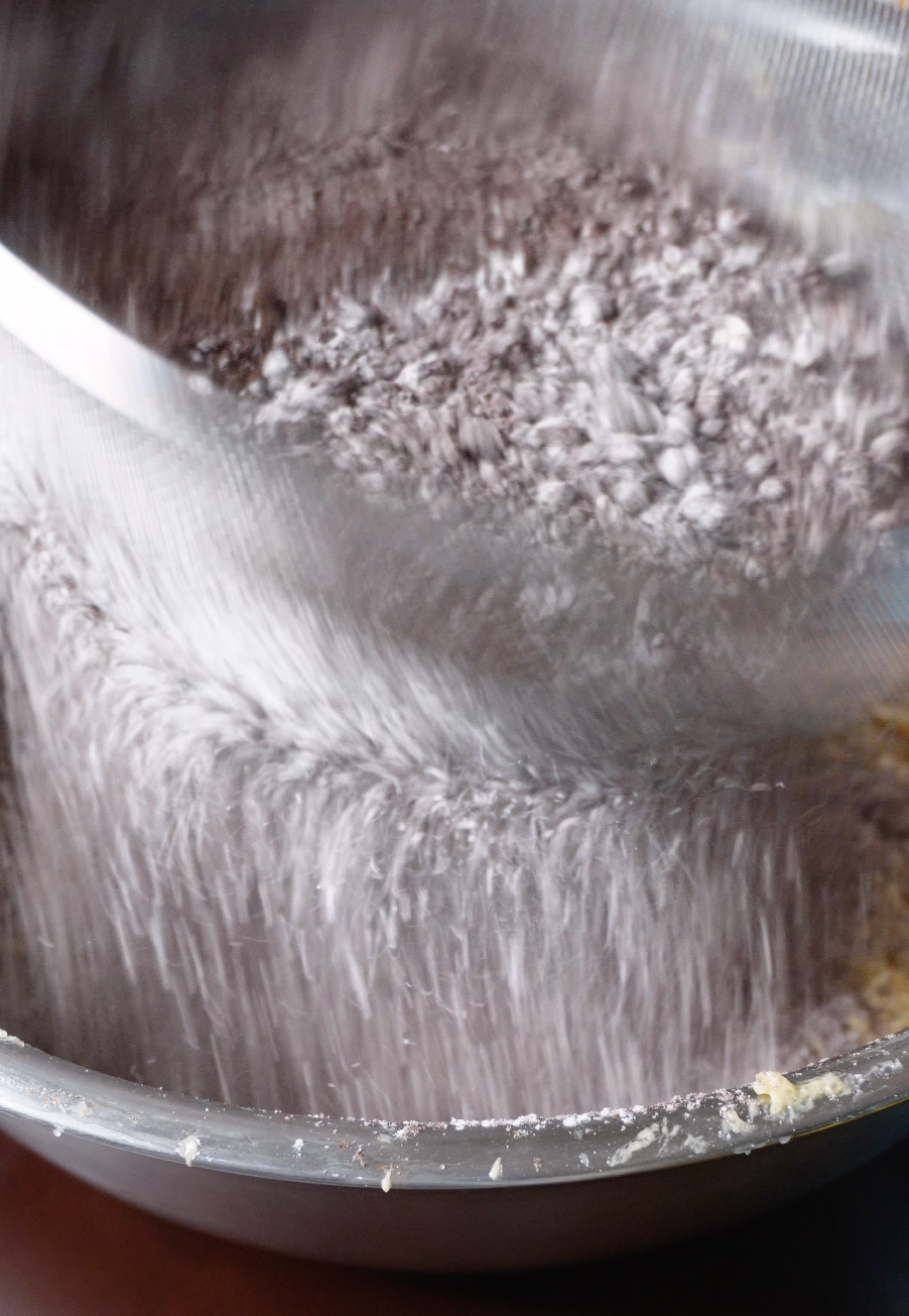 가루류를 한 번 더 체에 걸러 버터 반죽에 넣어줄게요.