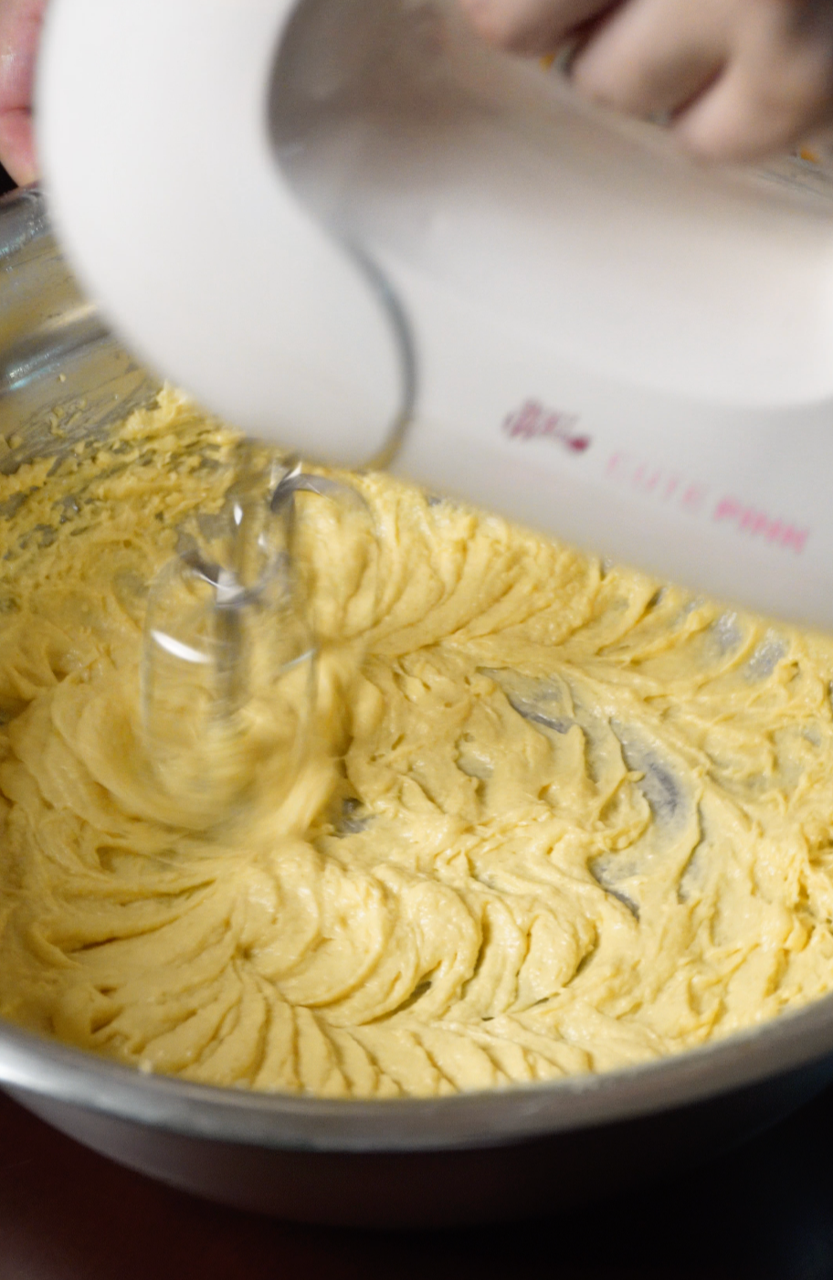 버터와 설탕을 휘핑하면 미세한 공기 방울이 생기고, 이게 나중에 케이크가 부풀게 만드는 구조가 됩니다.