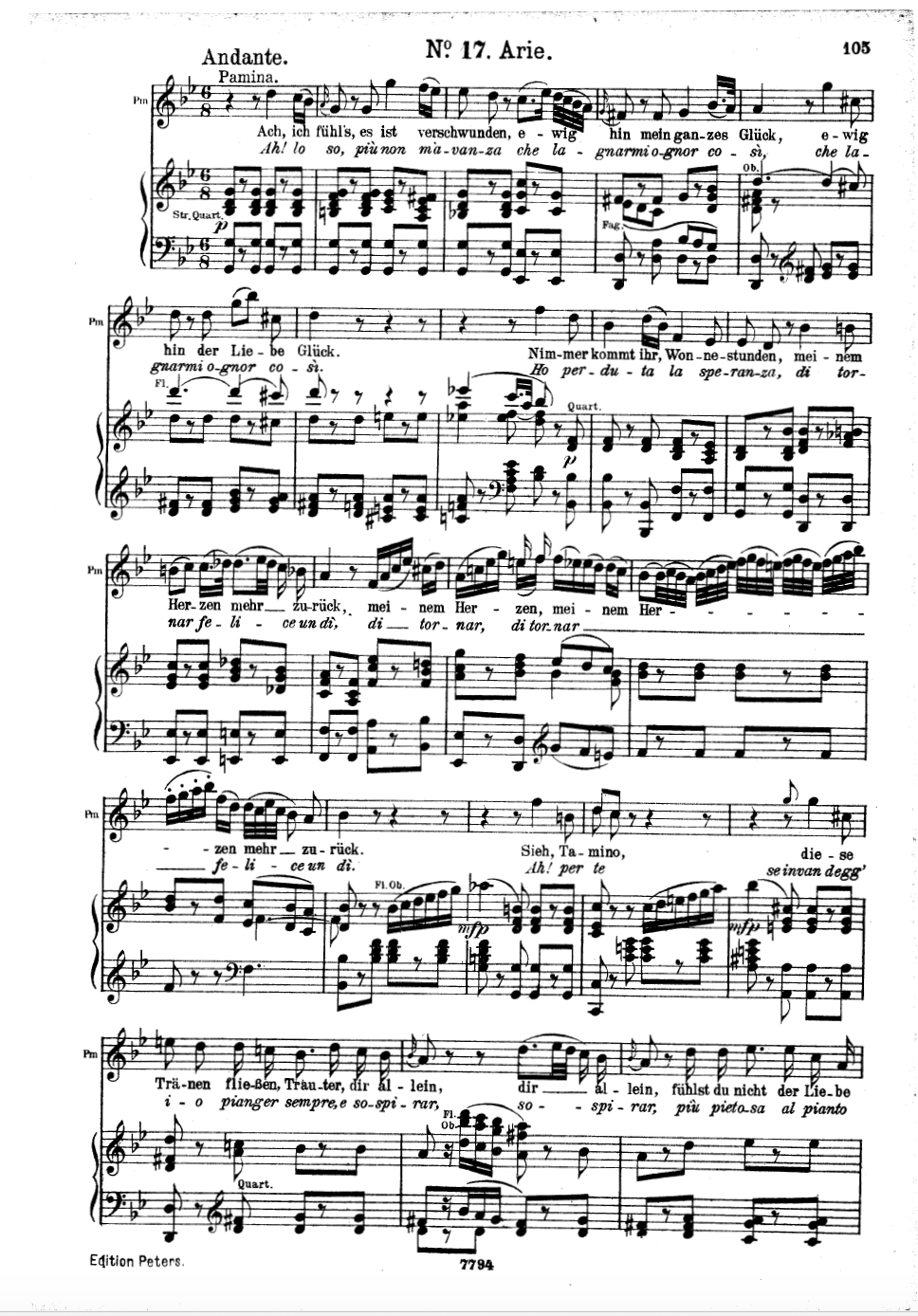 그중 2막에서 파미나 역의 아리아 ‘Ach, ich fühl’s’라는 곡이 있다.