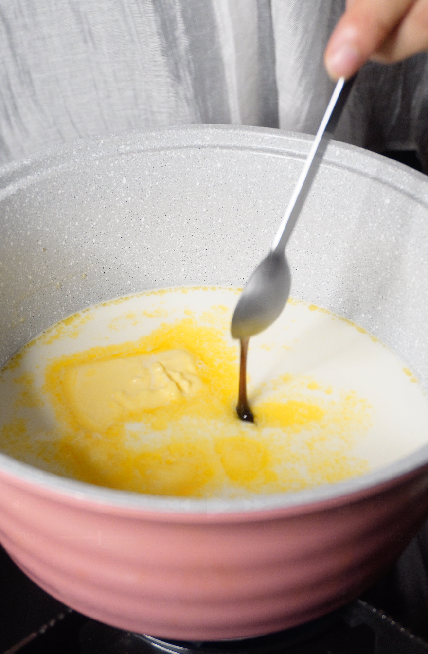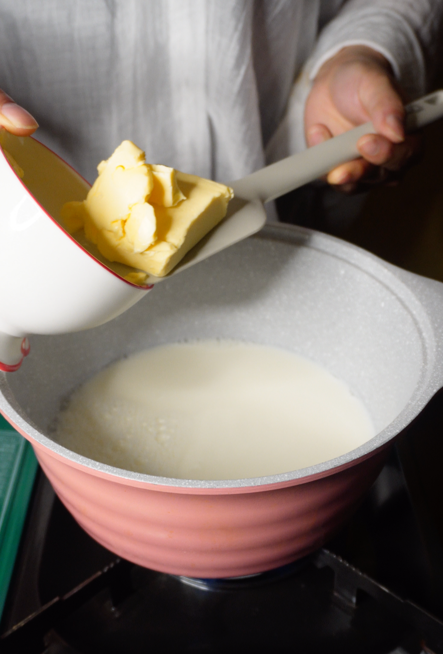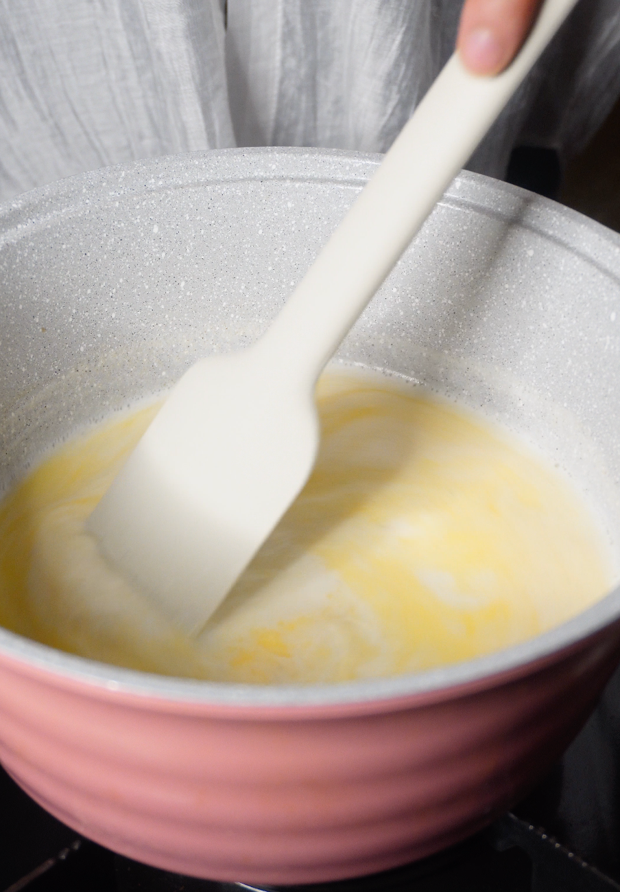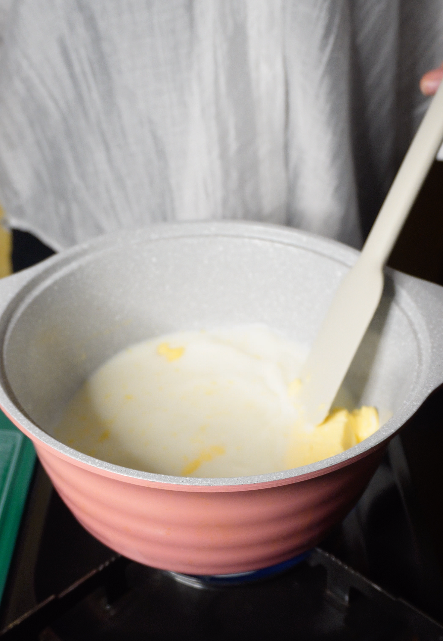 냄비에 우유, 버터, 바닐라빈(또는 익스트랙)을 넣고 버터가 다 녹을 정도로 약불에서 살짝 데워주세요.
