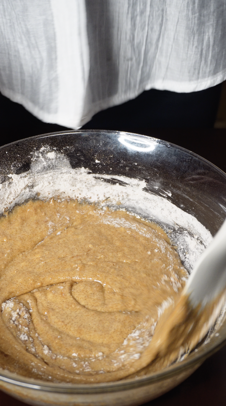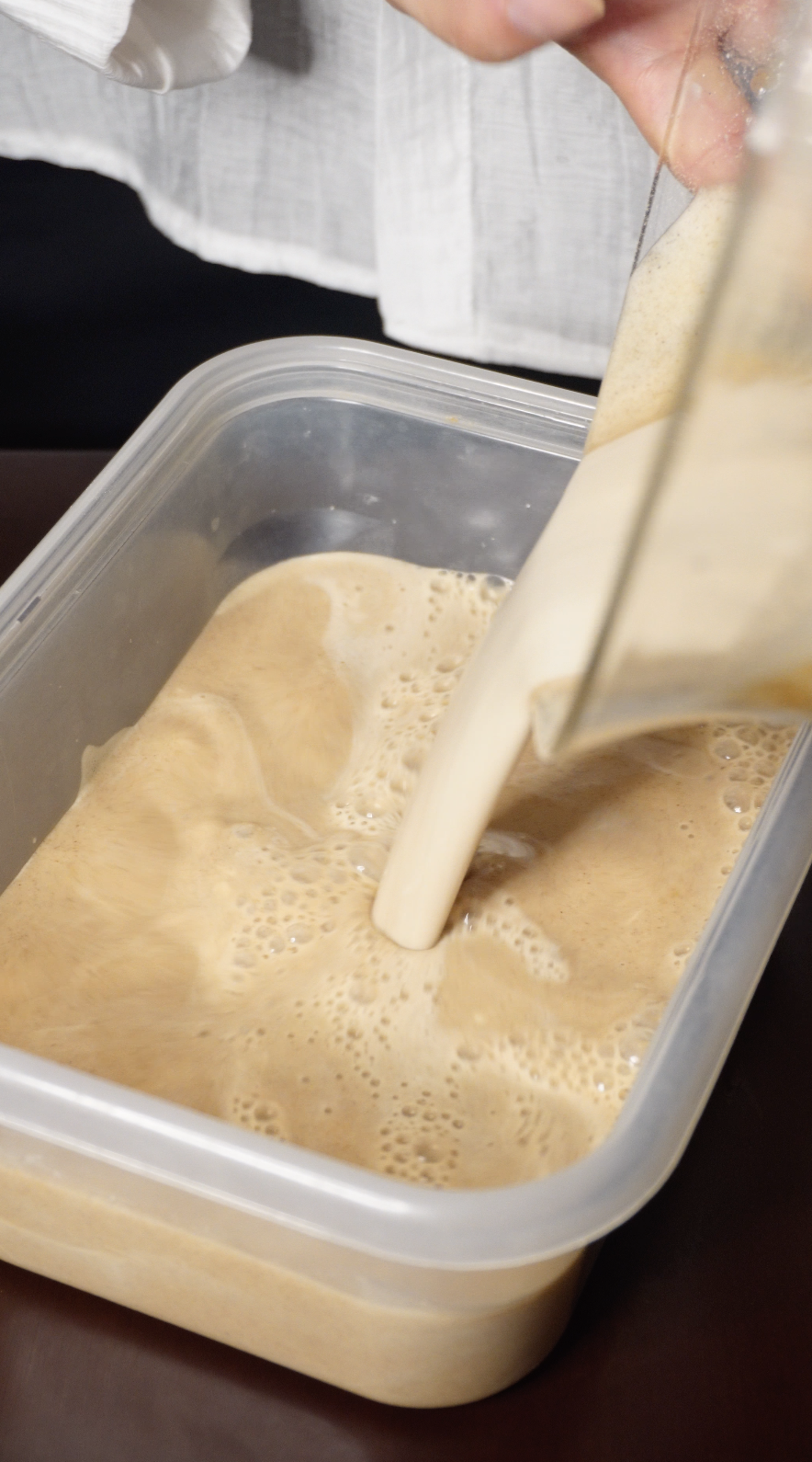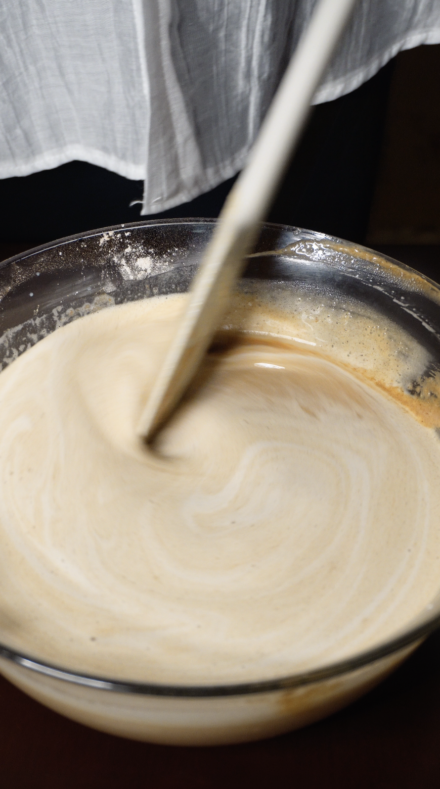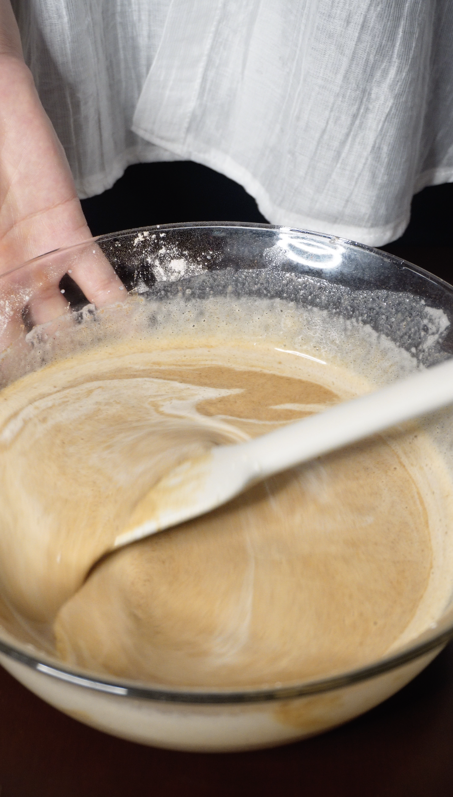 숙성한 반죽은 굽기 전에 한 번 부드럽게 저어 주세요.