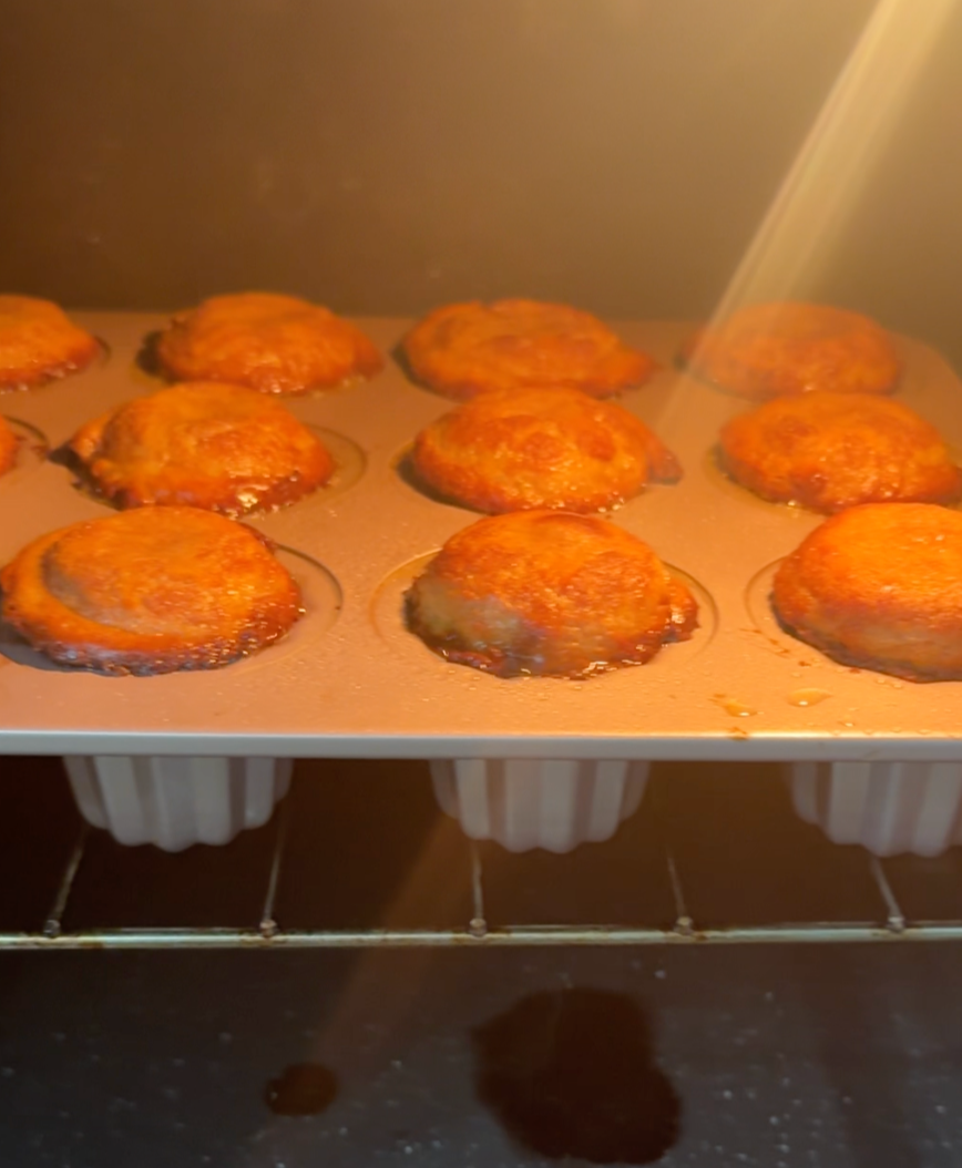틀에 버터를 바른 뒤, 반죽을 80~90% 채워주세요.