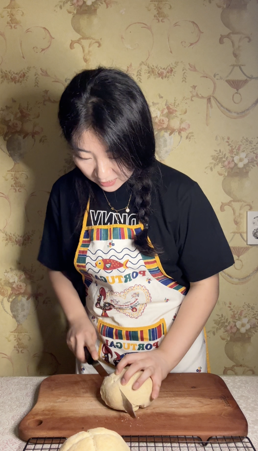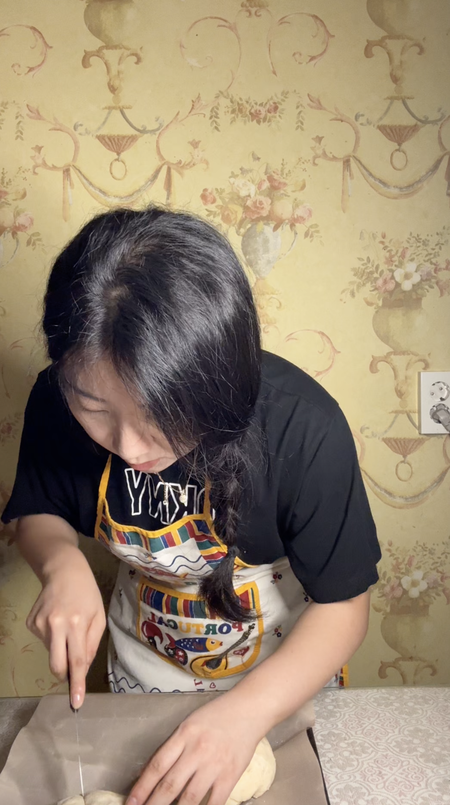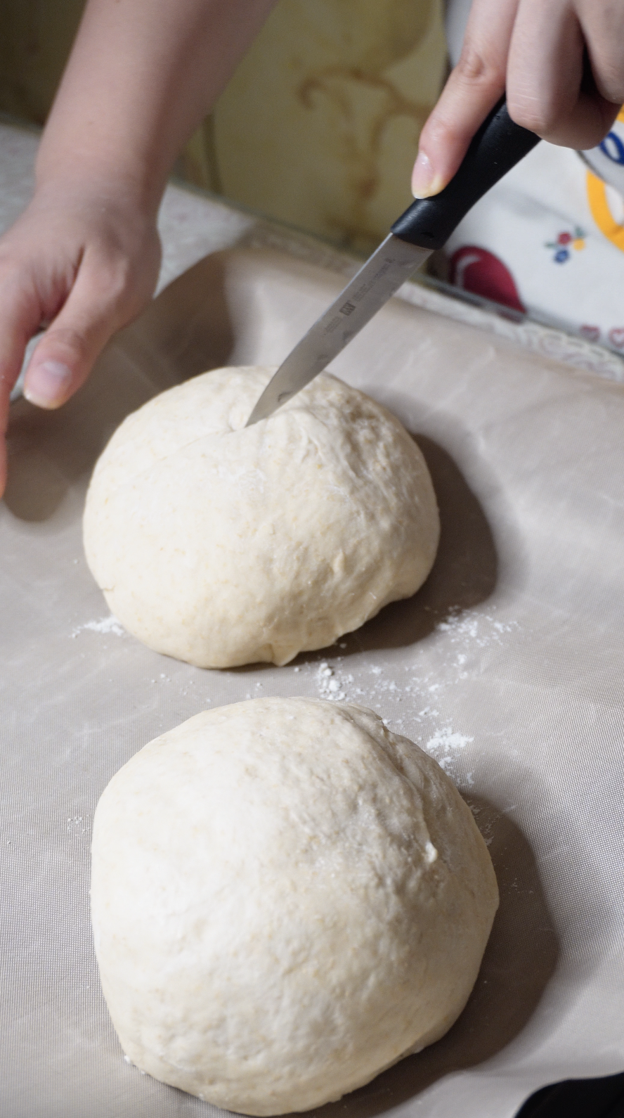 2차 발효가 끝난 직후, 쿠프(coupe)를 0.5~1cm 깊이로 내주세요. (저는 너무 얕게 내서 쿠프가 잘 열리지 않았네요..)