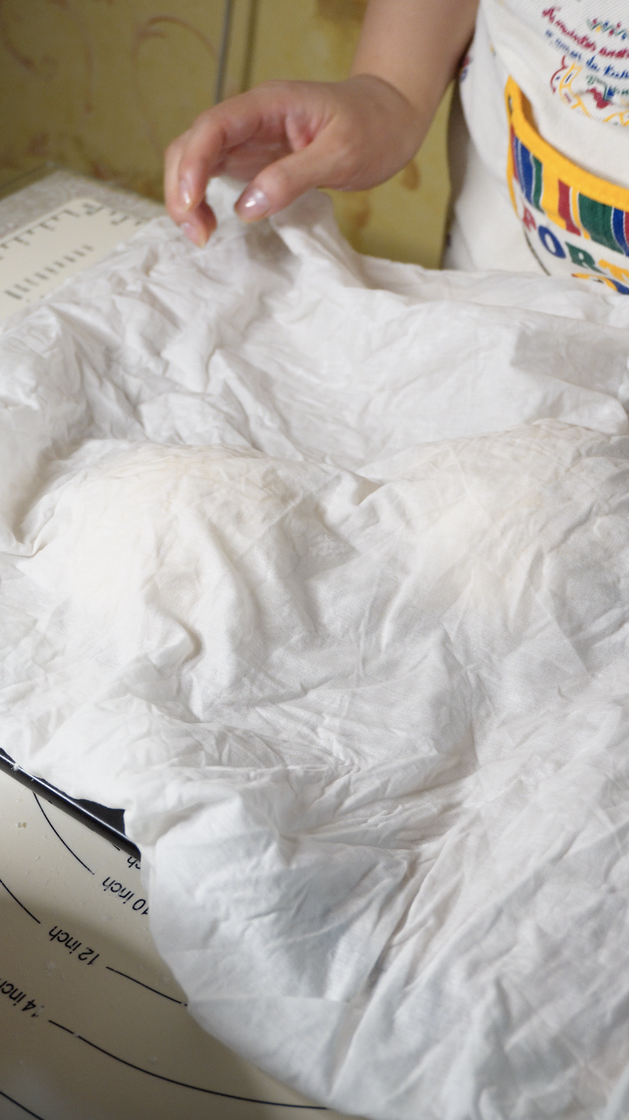 치댄 반죽을 동그랗게 만든 후, 젖은 면포로 덮어주세요.