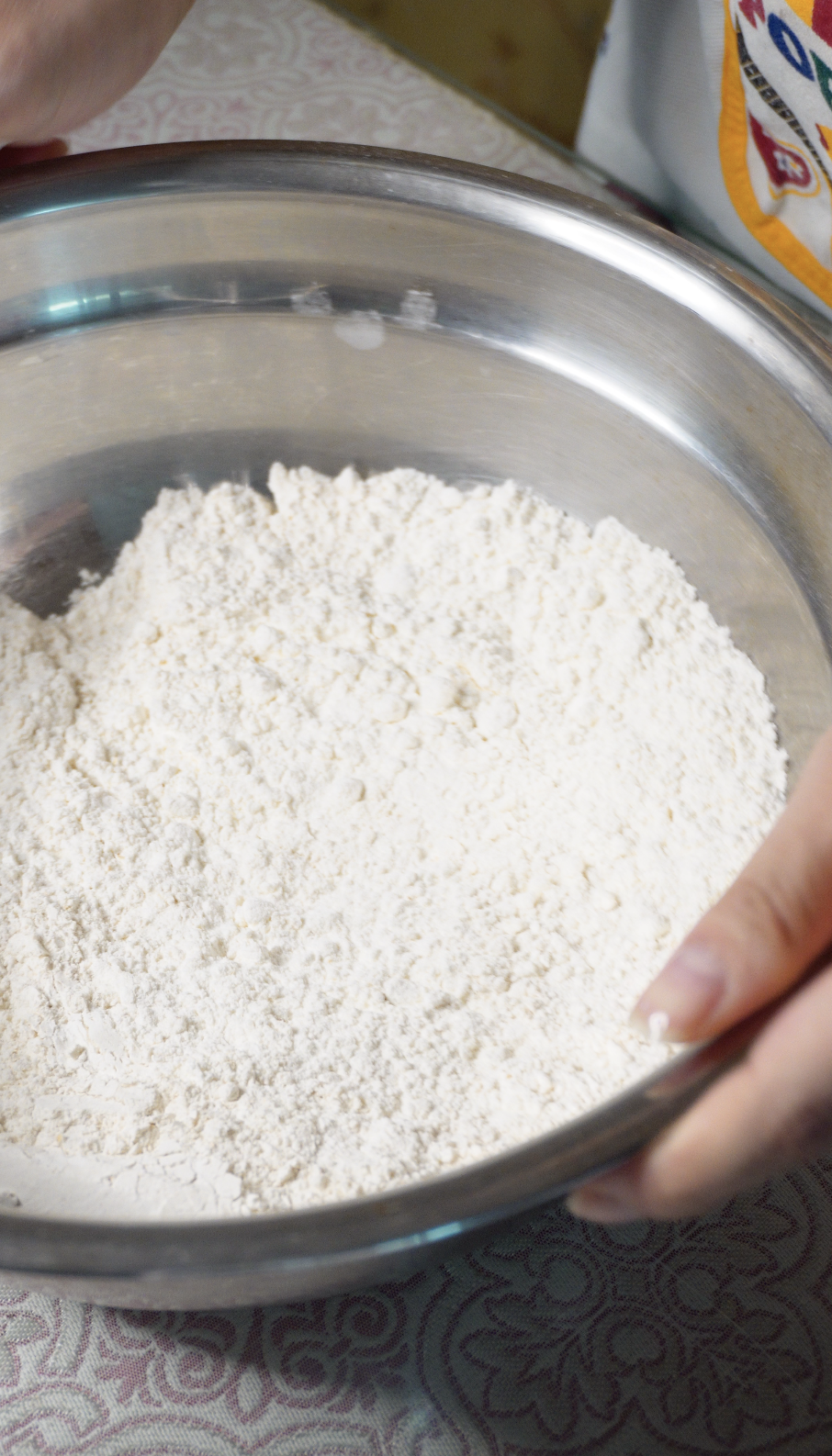 큰 볼에 가루류(통밀가루 + 중력분)를 넣어주세요.