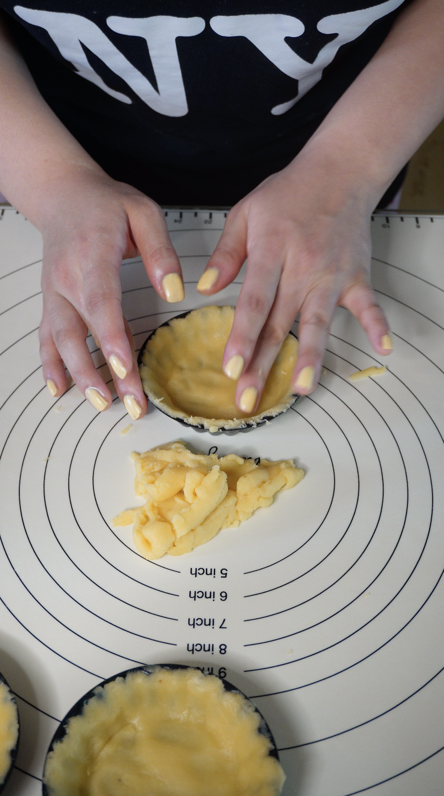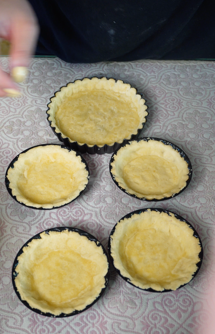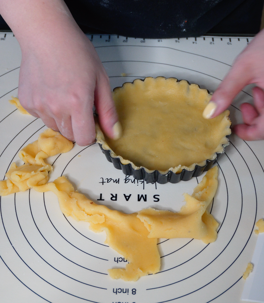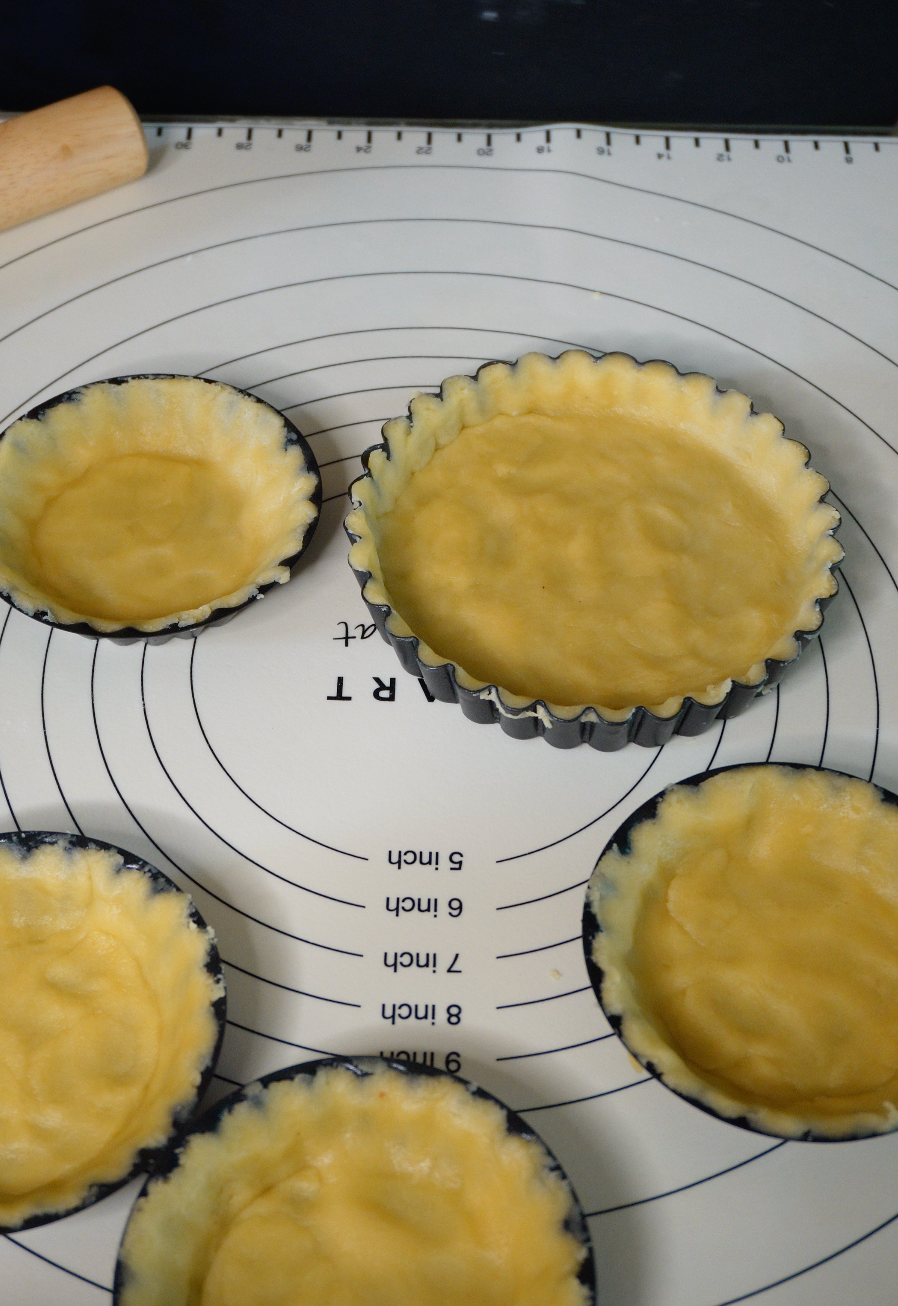 반죽을 타르트틀에 맞춰 모양을 잡아줍니다.