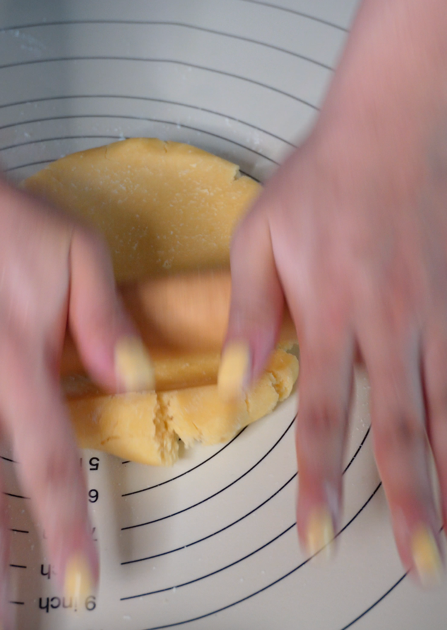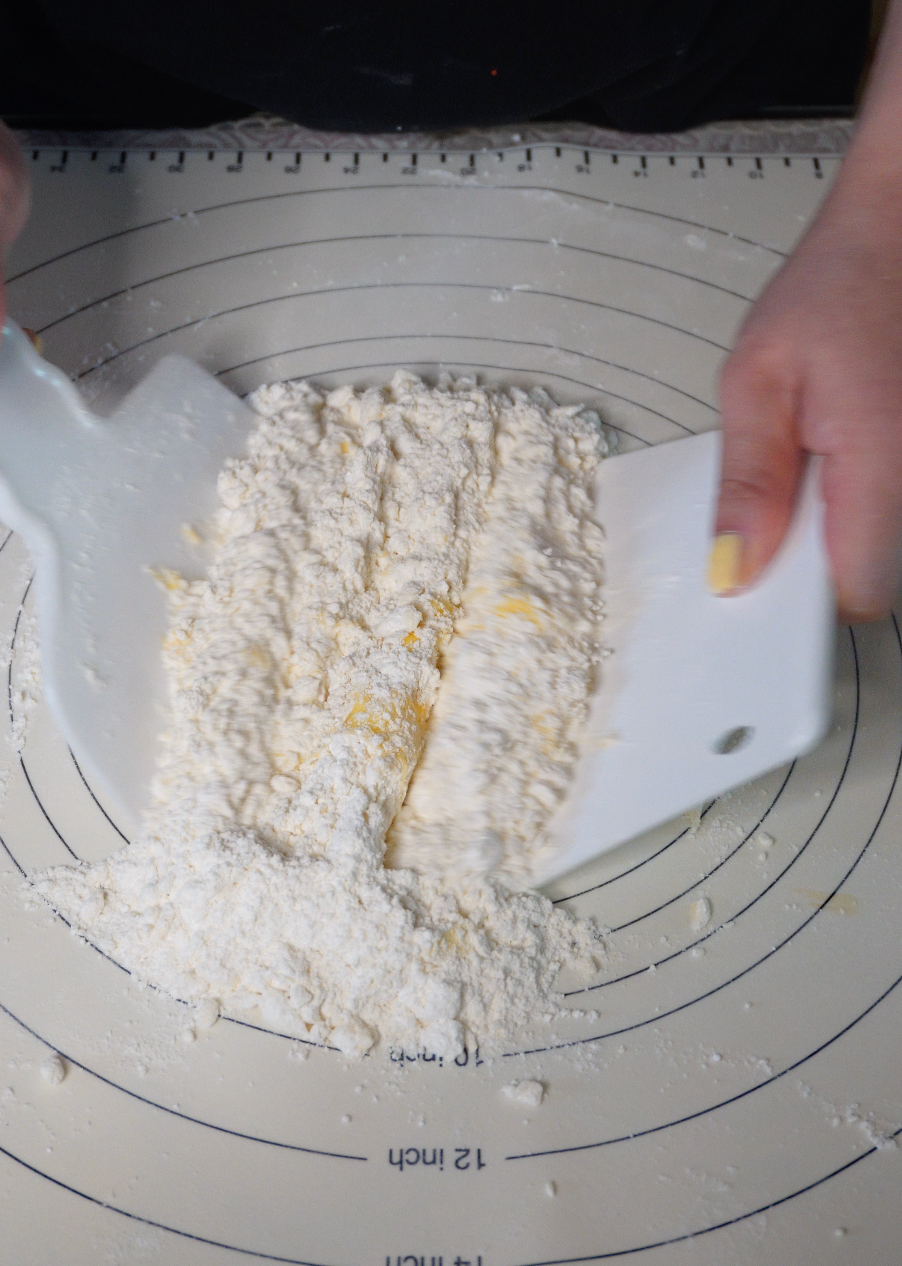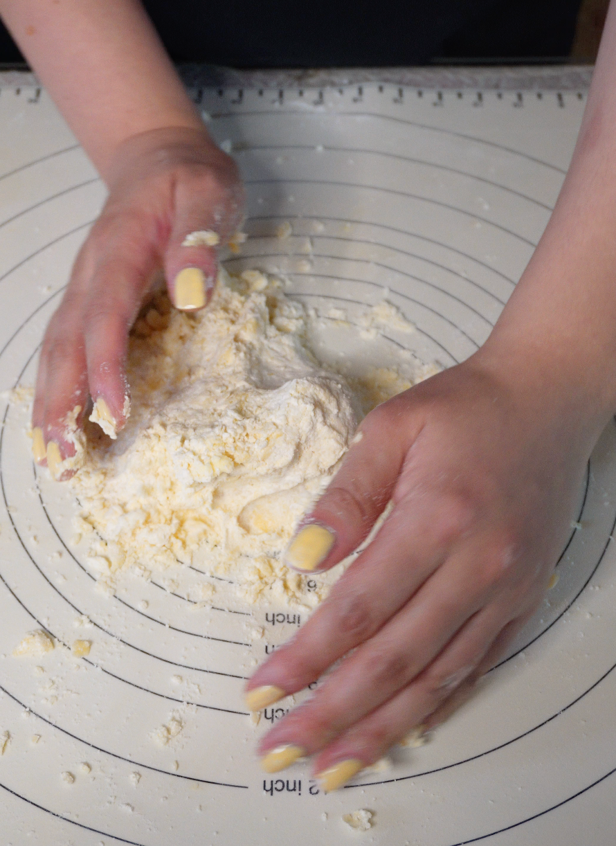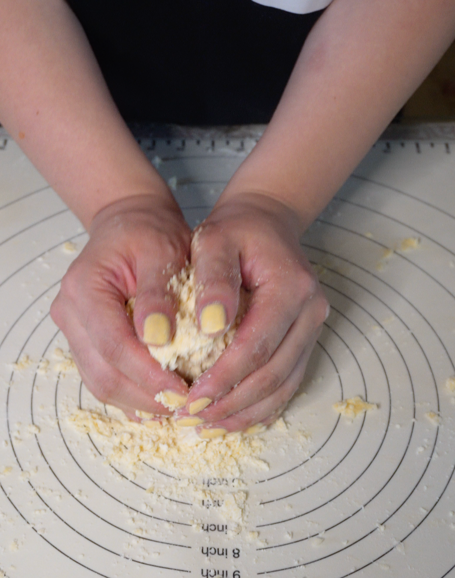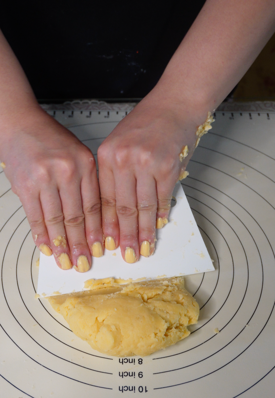 너무 주무르면 버터가 녹아 바삭함이 줄어들기 때문에 최소한으로, 살짝 뭉치는 정도만!