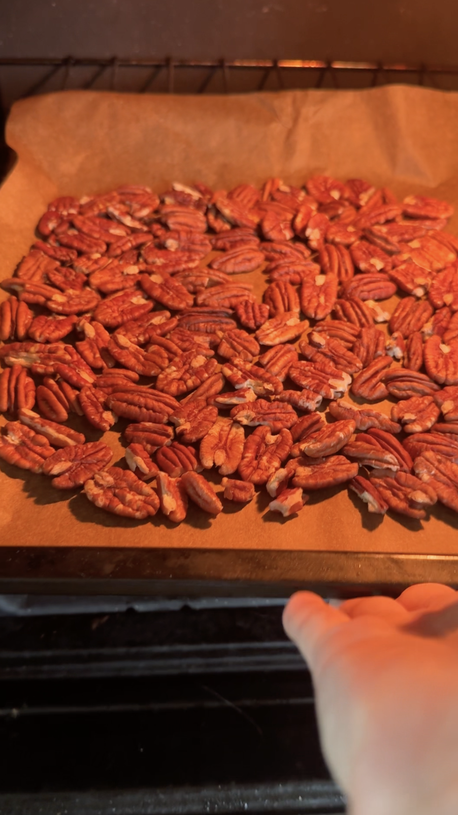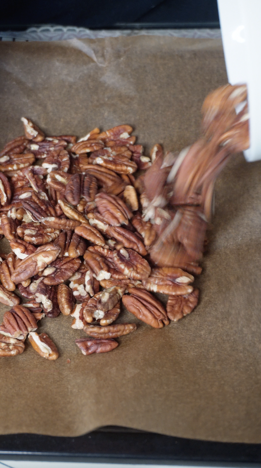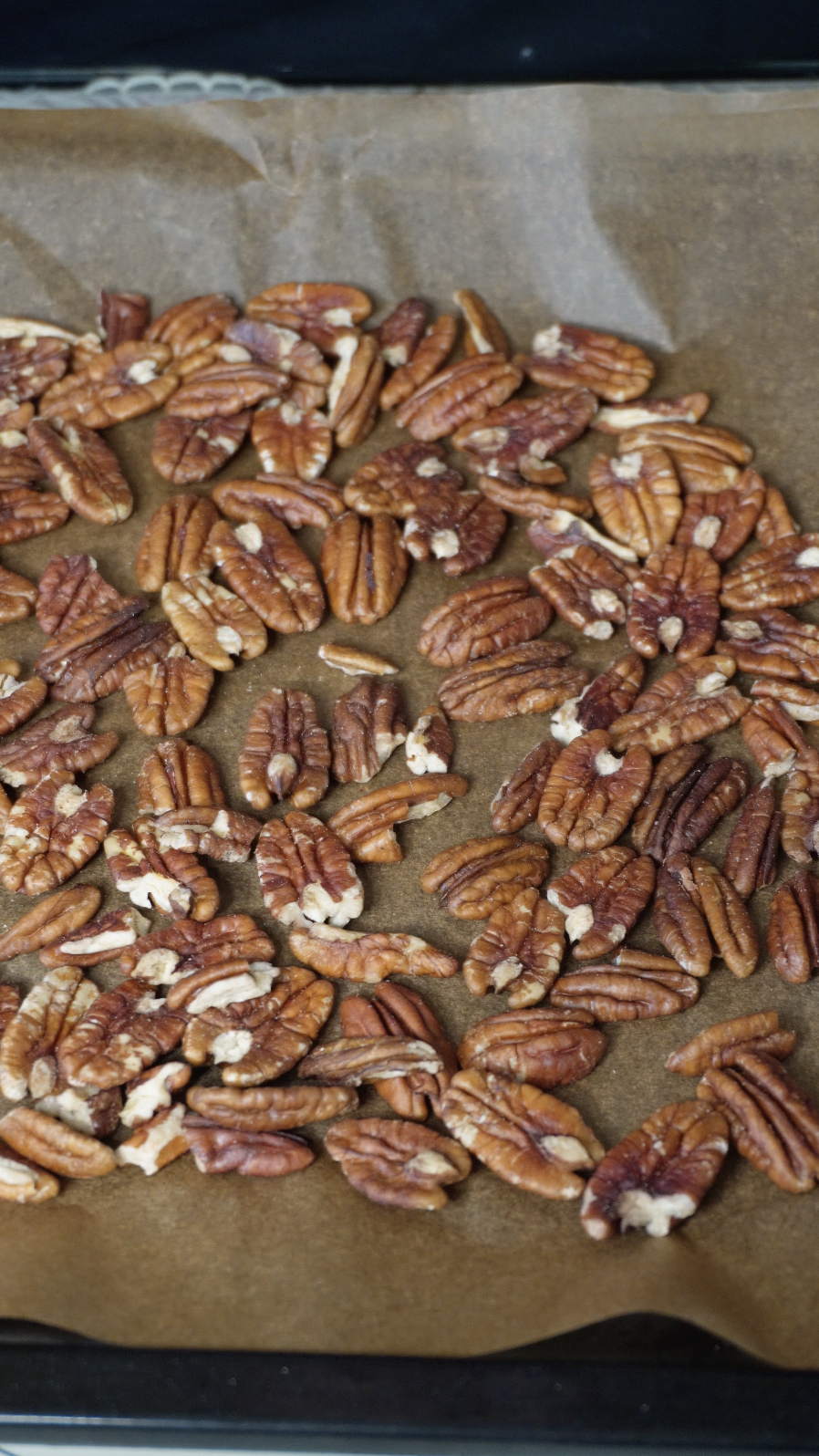 피칸을 170℃ 오븐에서 5~10분 정도 굽거나 팬에서 살짝 볶습니다.