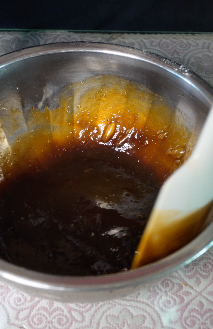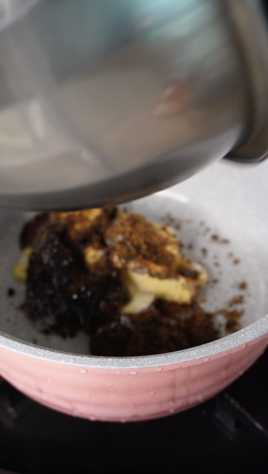 버터, 머스코바도 설탕, 꿀, 올리고당, 소금을 한 번에 넣고 약불에서 녹여줍니다.