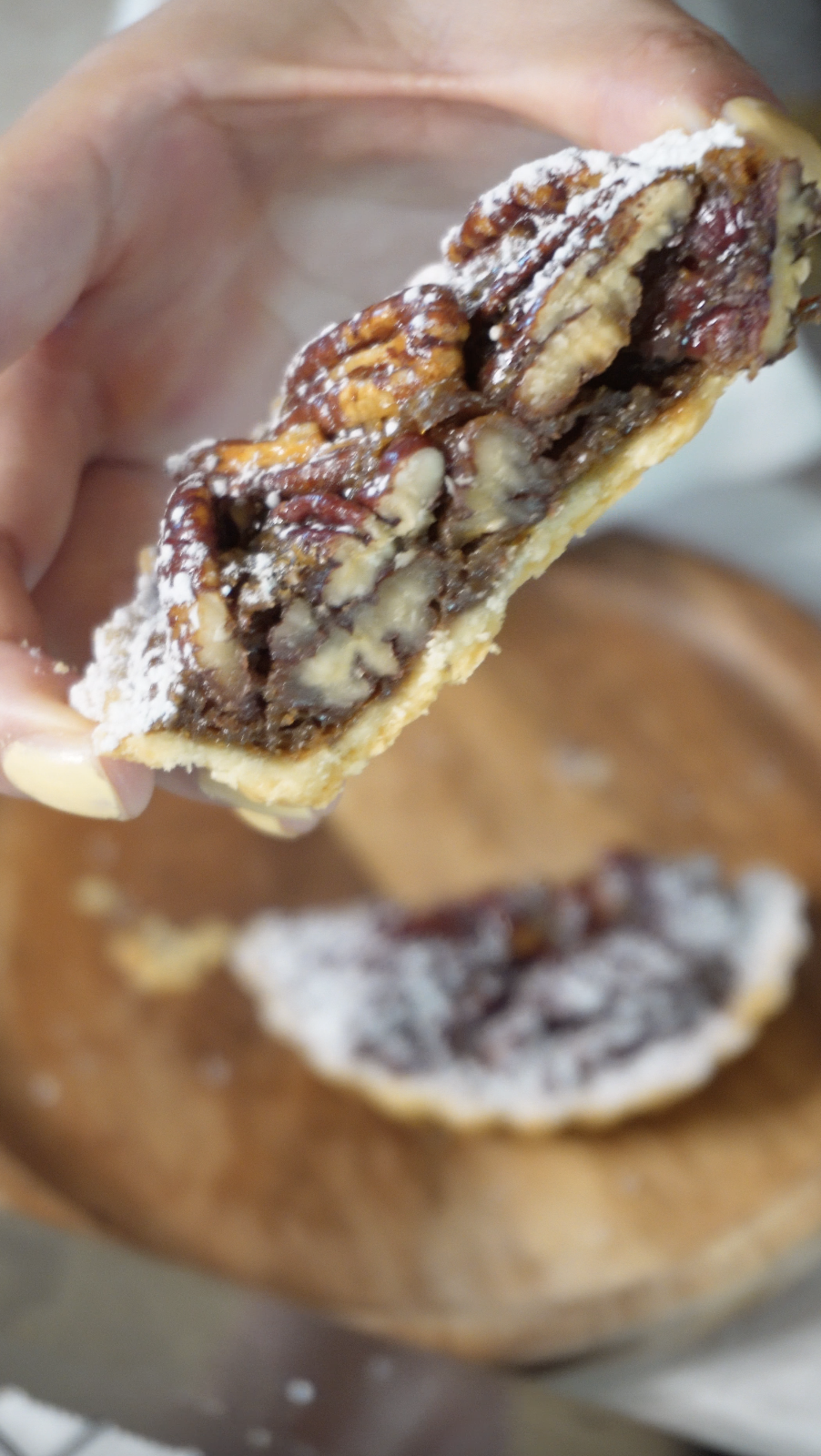 너무 달지 않고, 피칸의 고소함과 타르트지의 바삭함이 살아 있어 씹는 재미가 있는 디저트예요.