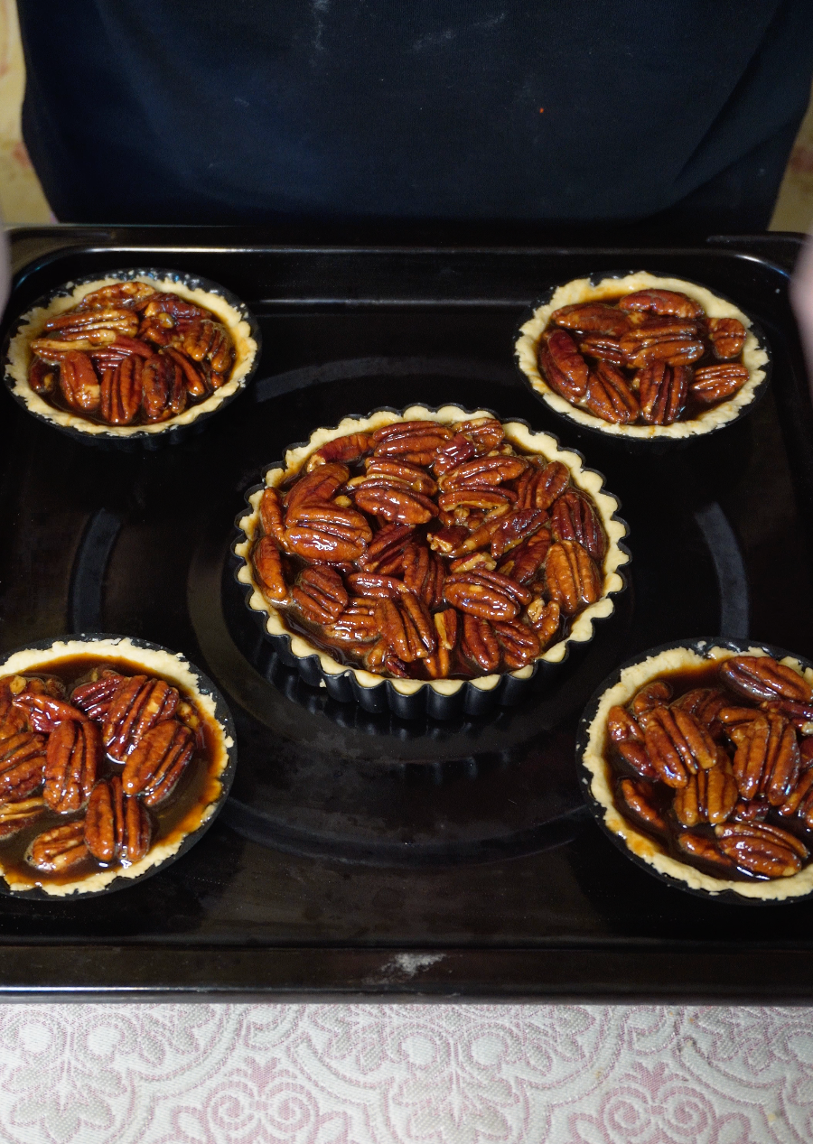 1차로 구워낸 타르트틀에 피칸 필링을 예쁘게 채워주세요.