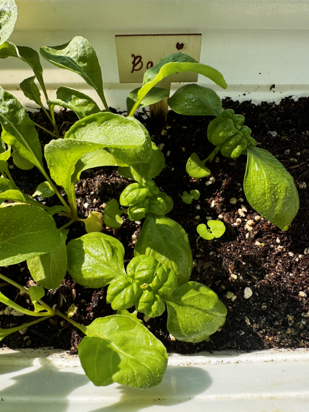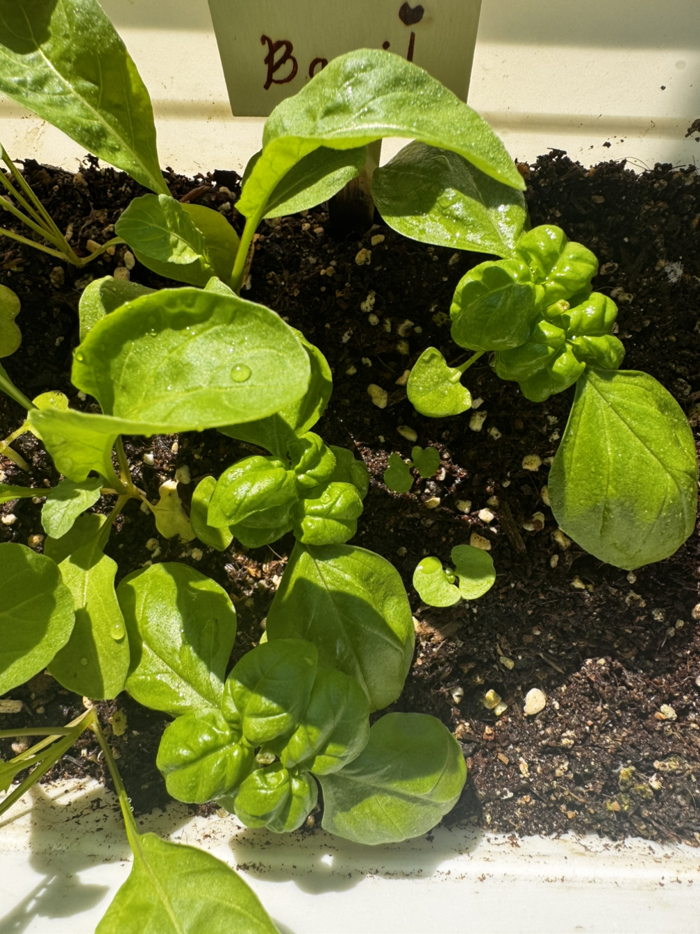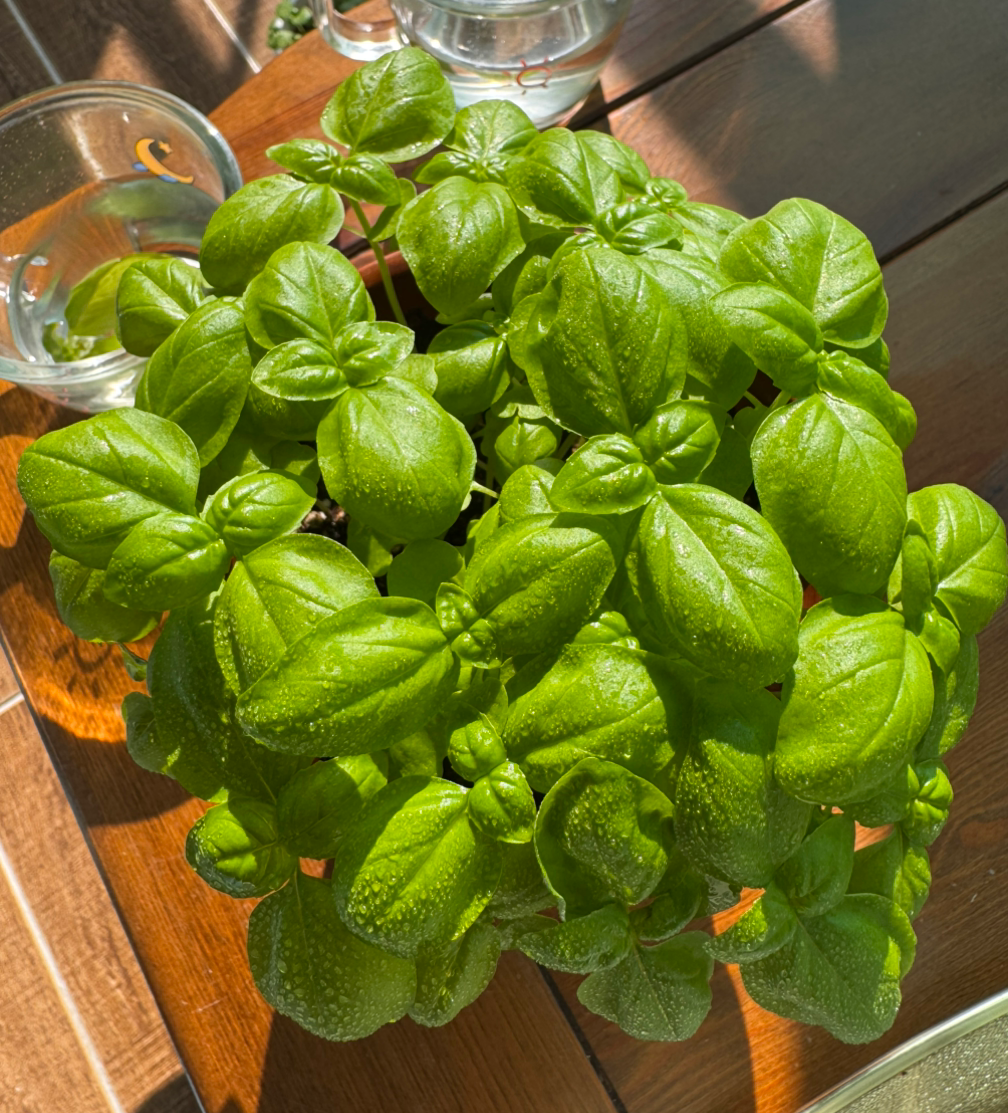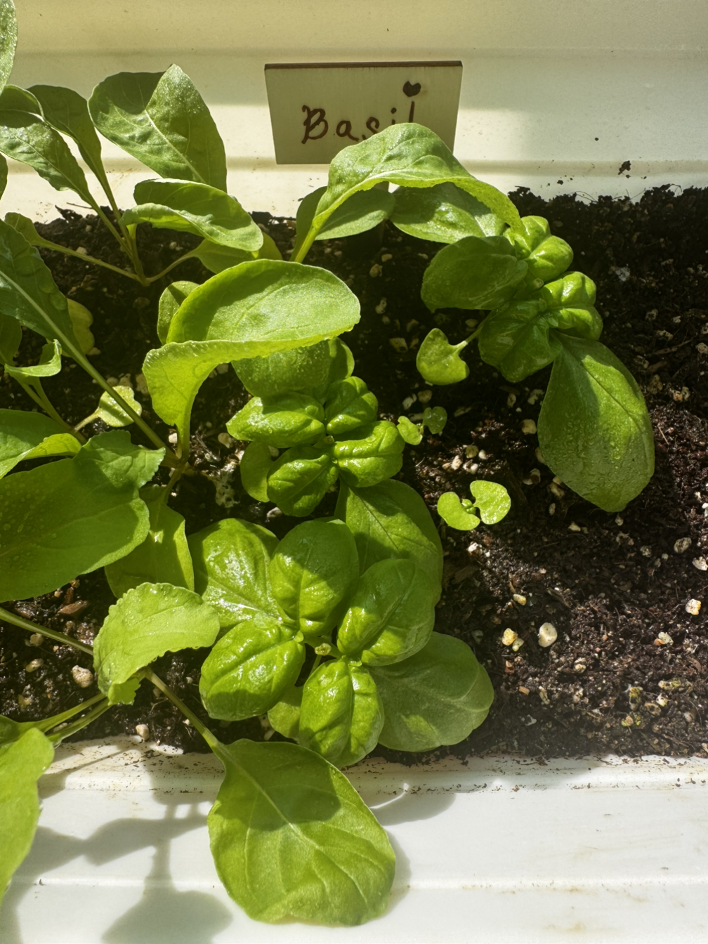 두 번째로 심은 바질이 더 쑥쑥 자라고 있다. 키도 더 크고