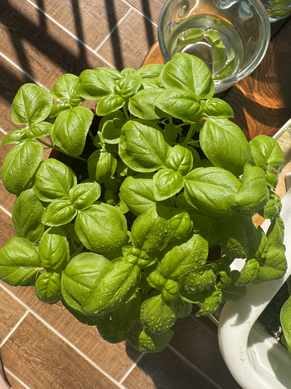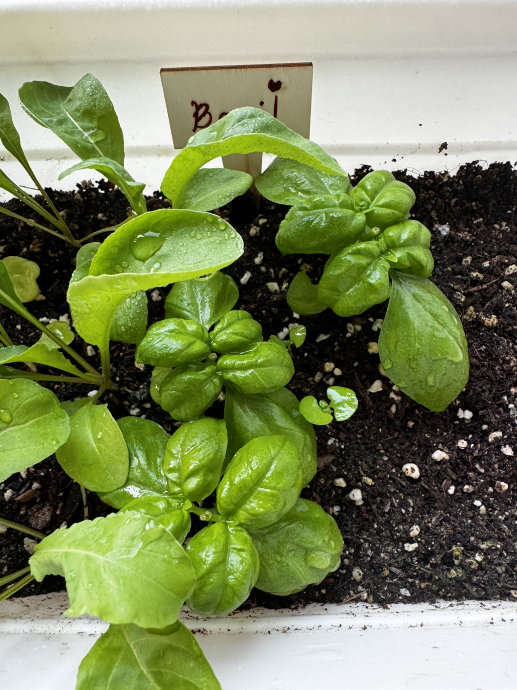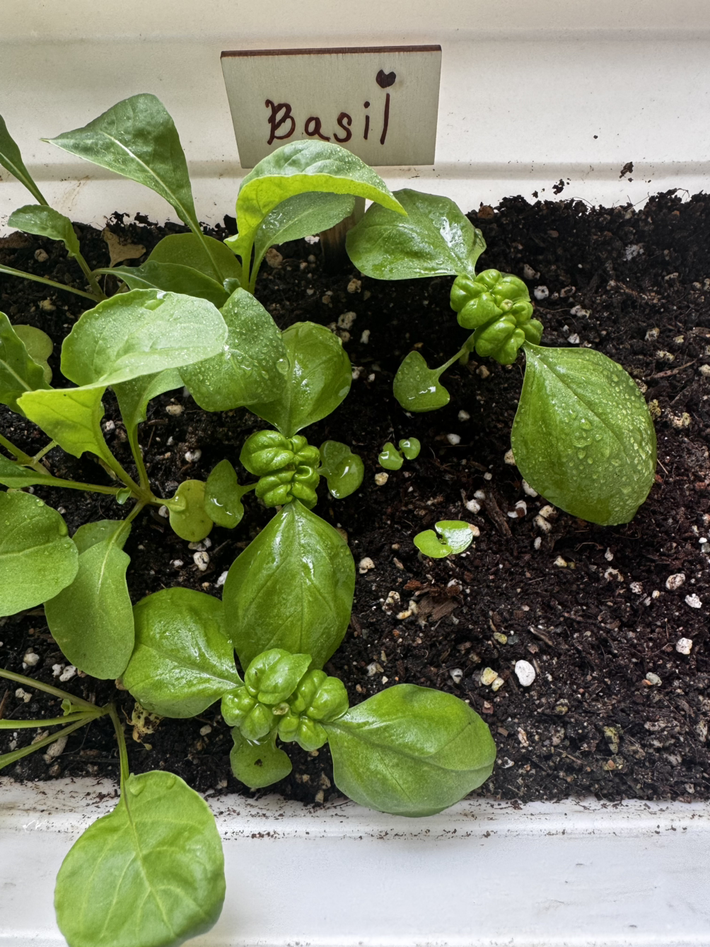 두 번째로 심은 바질이 더 쑥쑥 자라고 있다. 키도 더 크고