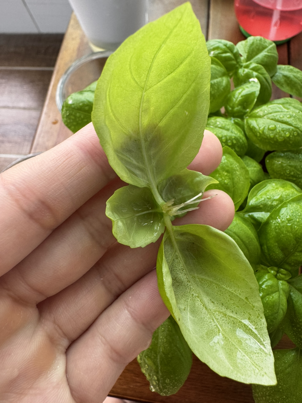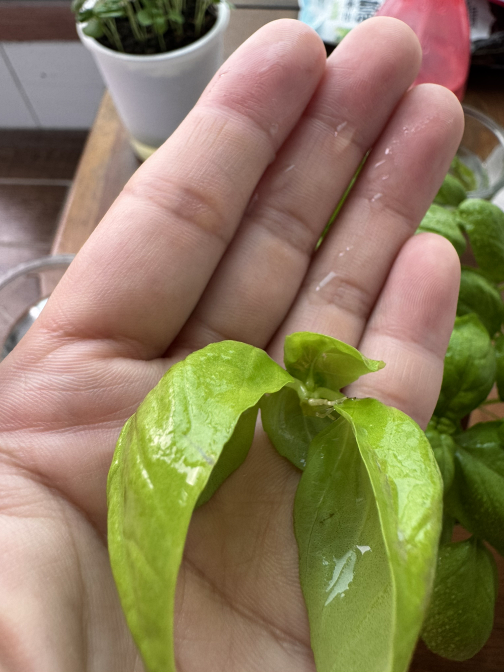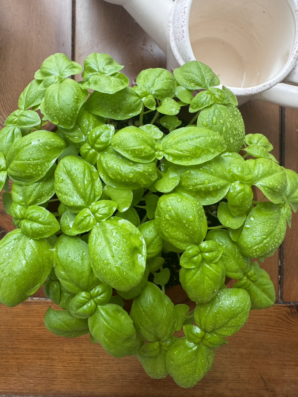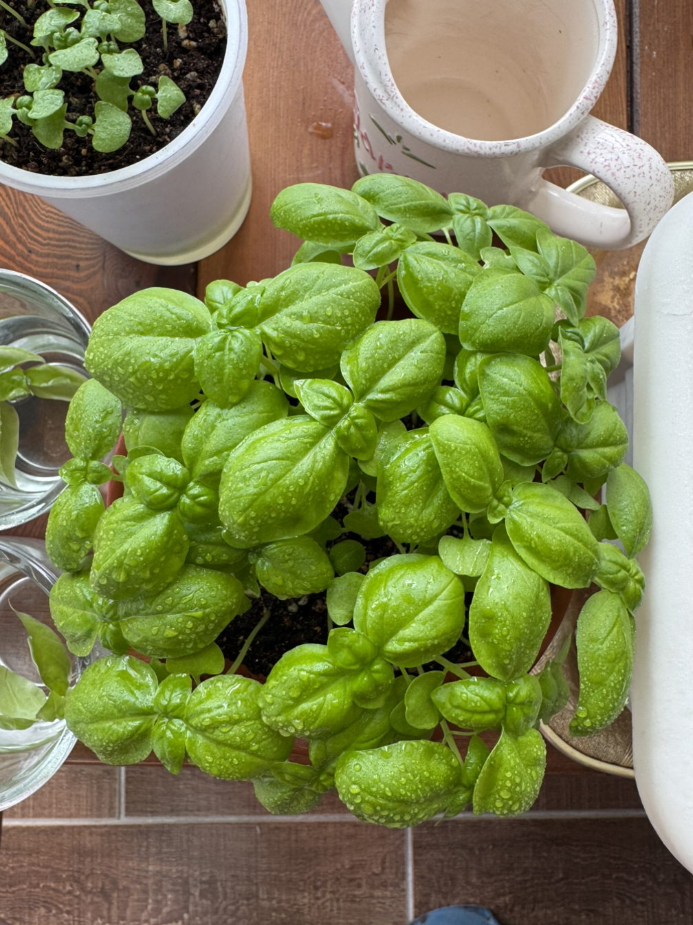 두 번째로 심은 바질이 더 쑥쑥 자라고 있다. 키도 더 크고