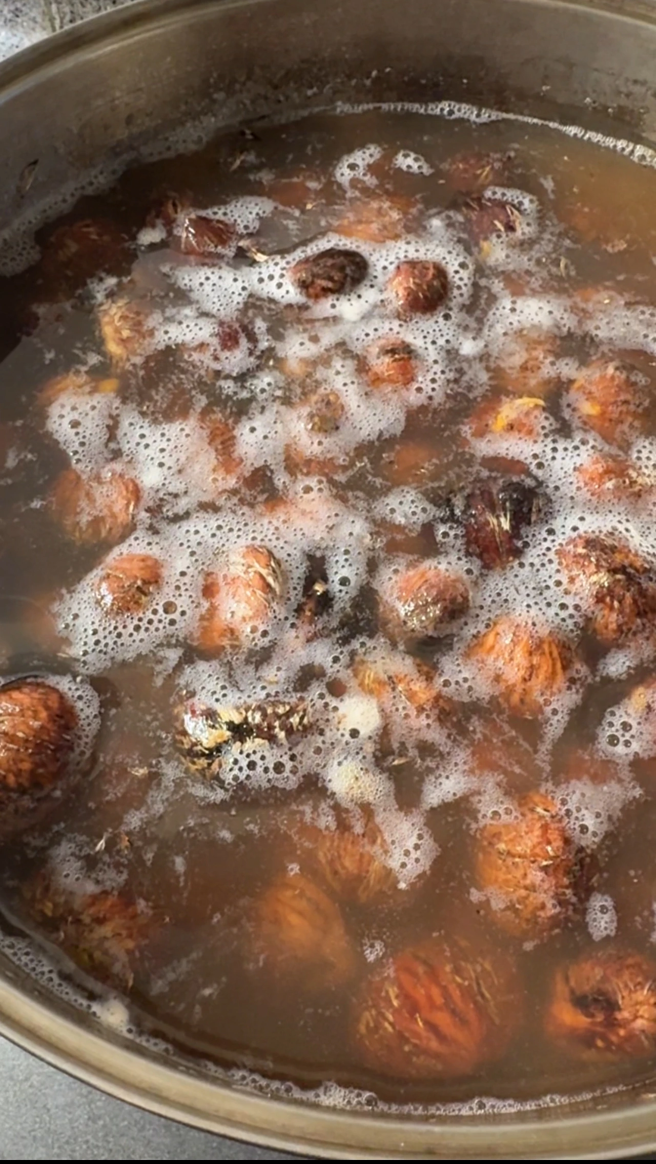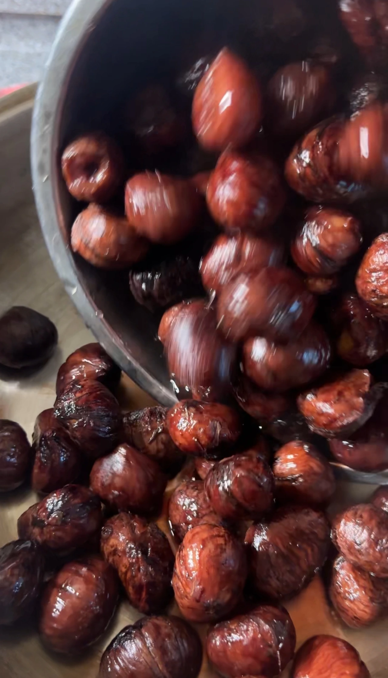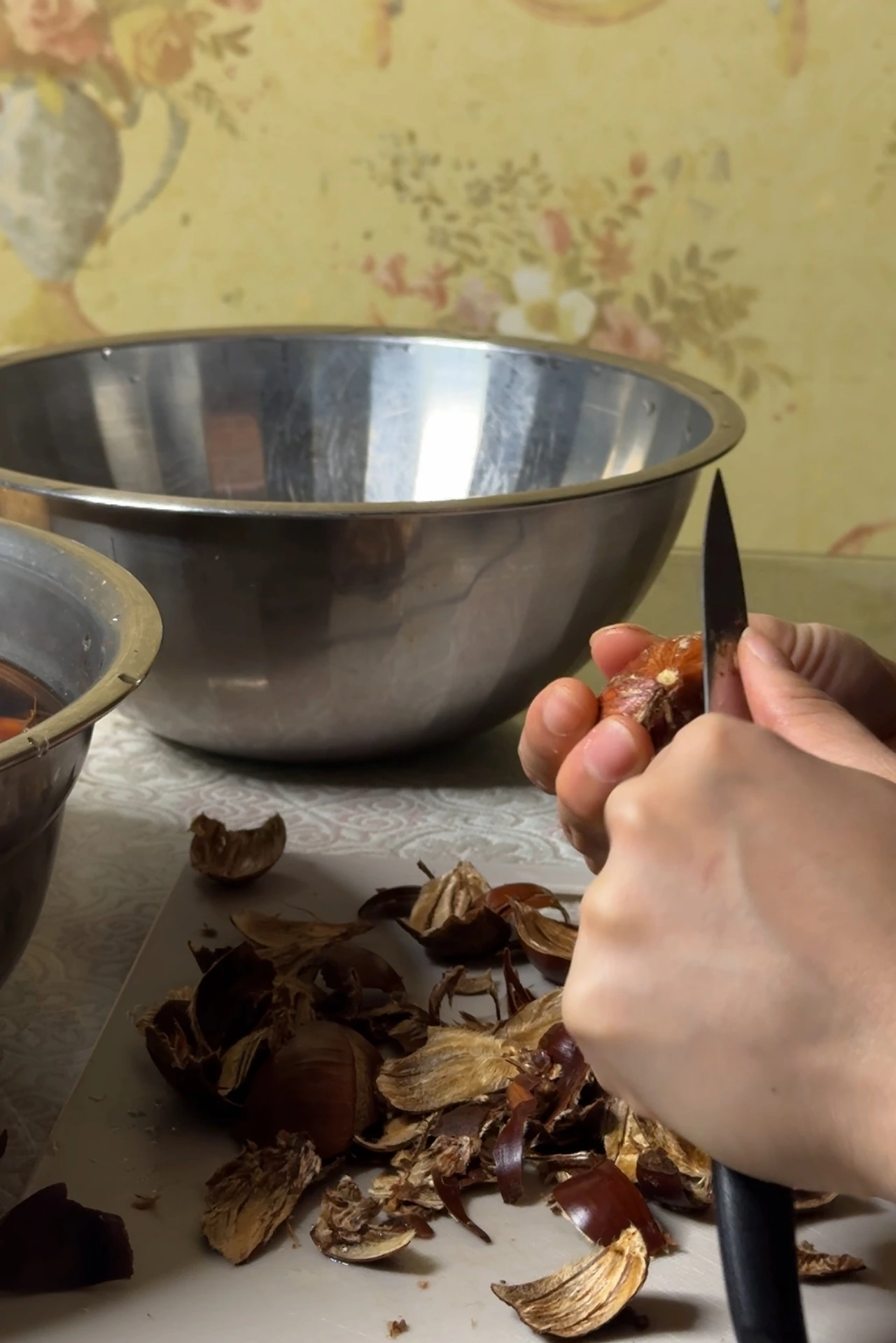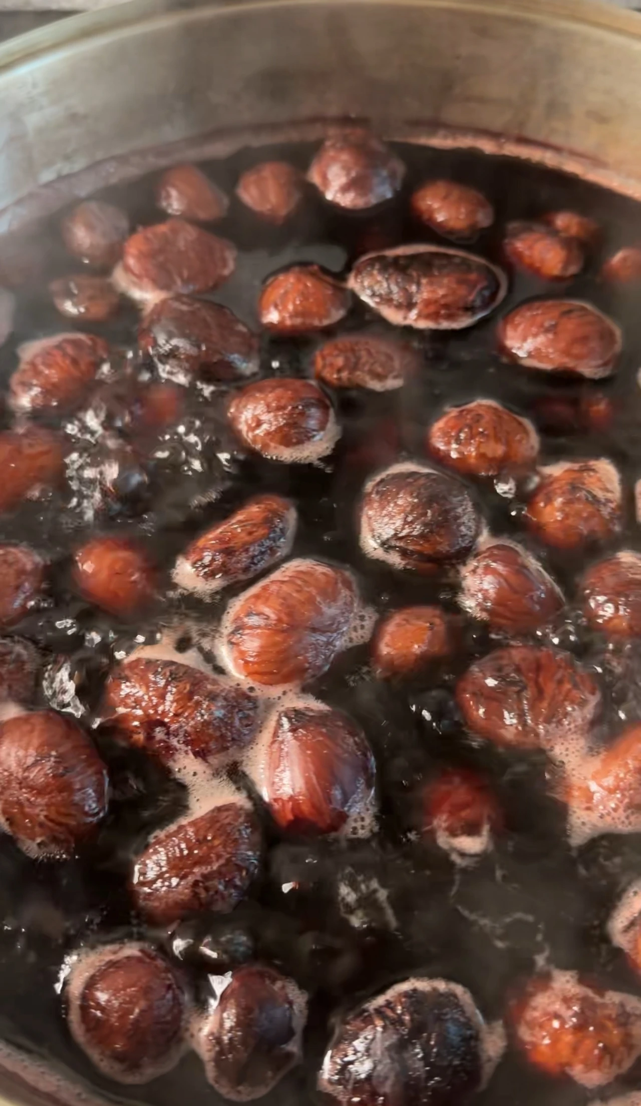 이 과정은 밤 껍질의 쓴맛을 제거하고, 식감을 부드럽게 만들어 주는 단계입니다.