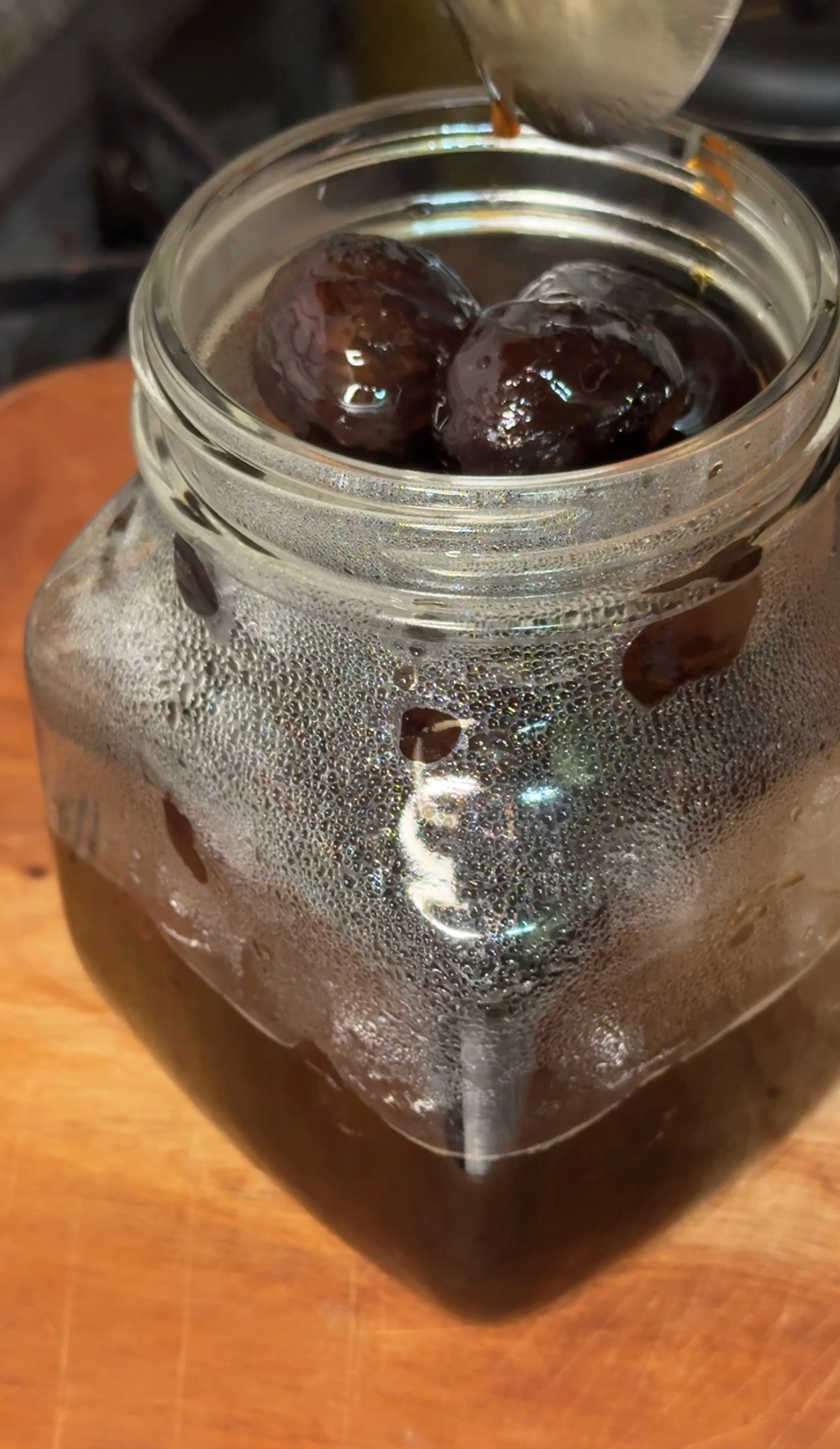 뜨거운 물로 미리 소독한 유리병에 보늬밤을 차곡차곡 담아 주고,