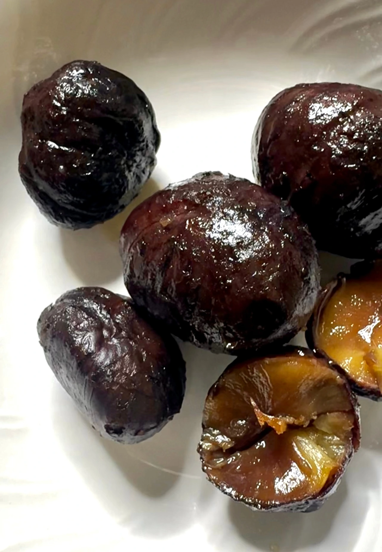 보늬밤은 겉껍질만 제거한 뒤, 속껍질이 붙은 상태로 설탕과 간장 등을 넣어 달게 조린 간식이에요.