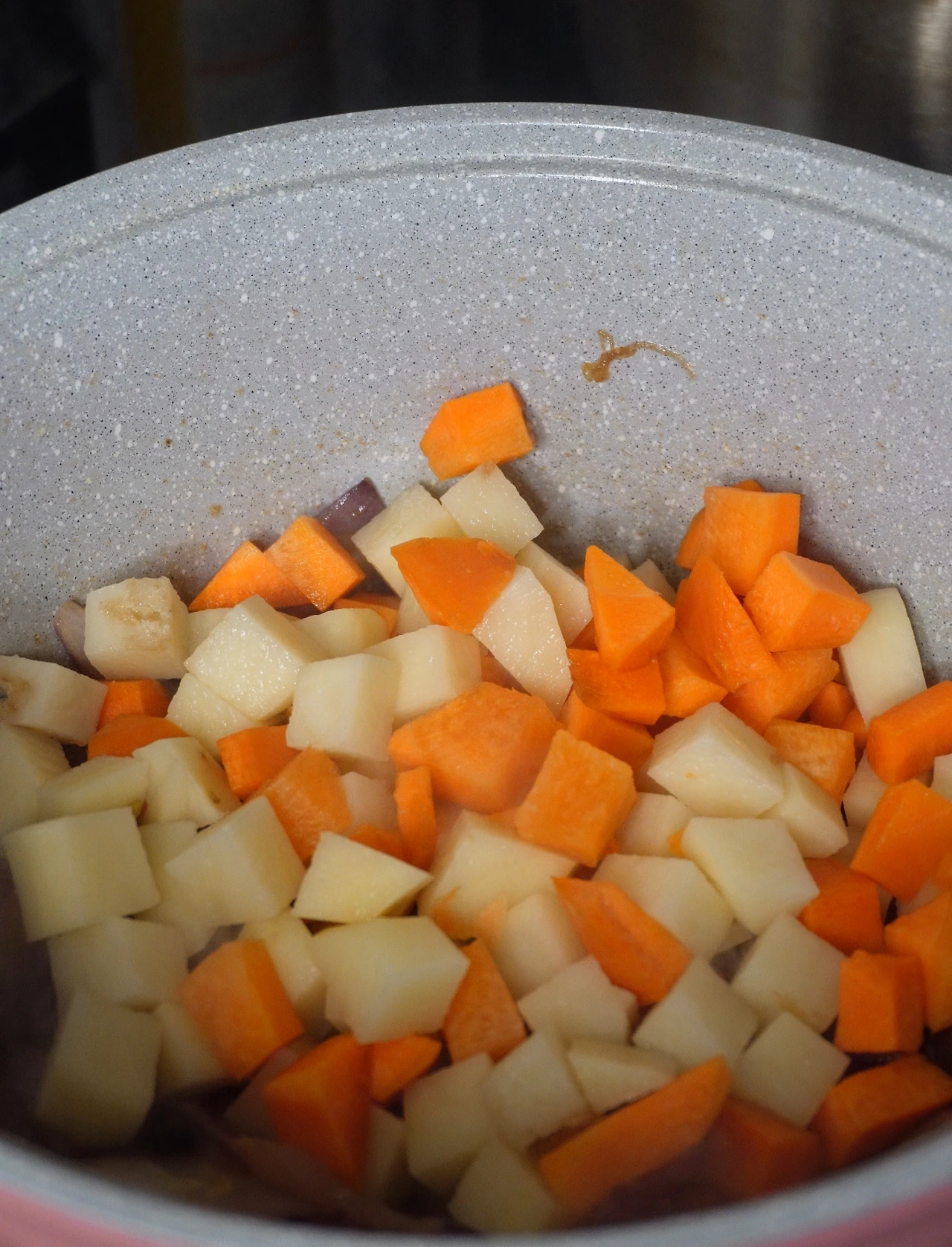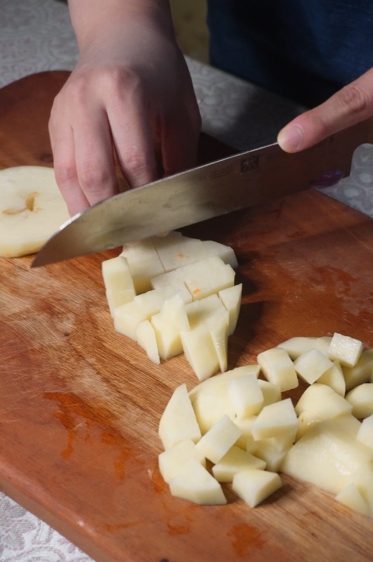 양파, 당근, 감자를 먹기 좋은 크기로 썰어줍니다.