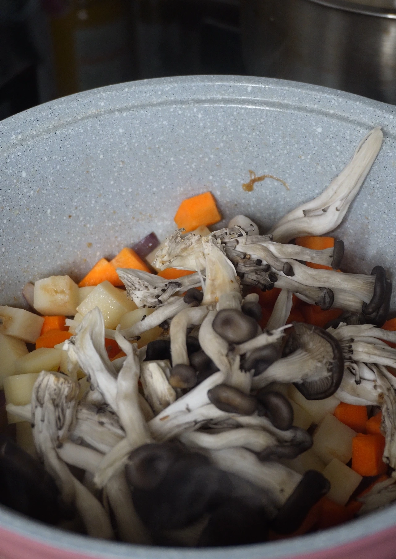 굽는 동안에는 뚜껑을 덮어두고, 마지막에만 뚜껑을 열어 마무리했습니다.