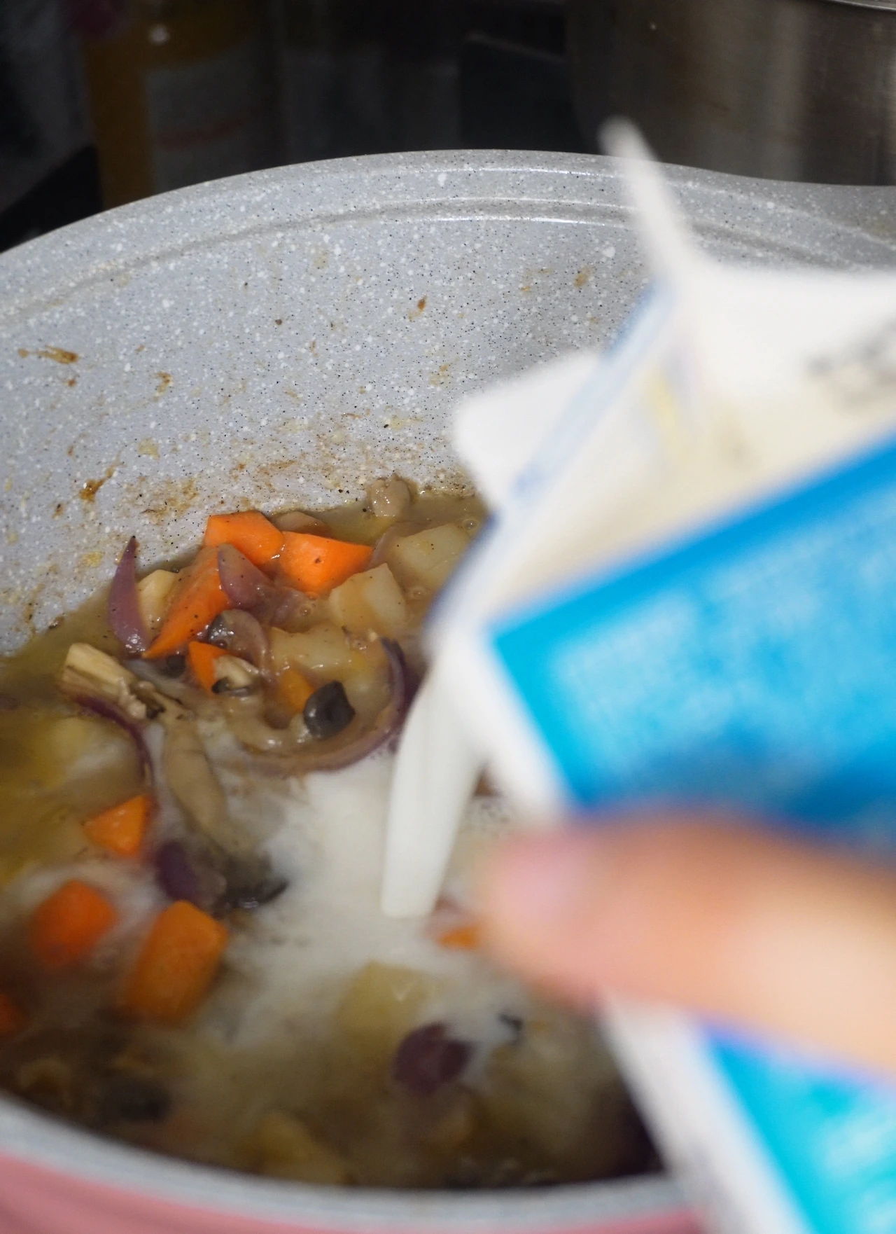 우유를 넣으면 카레가 한층 더 크리미해지고 고소한 맛이 살아나요.