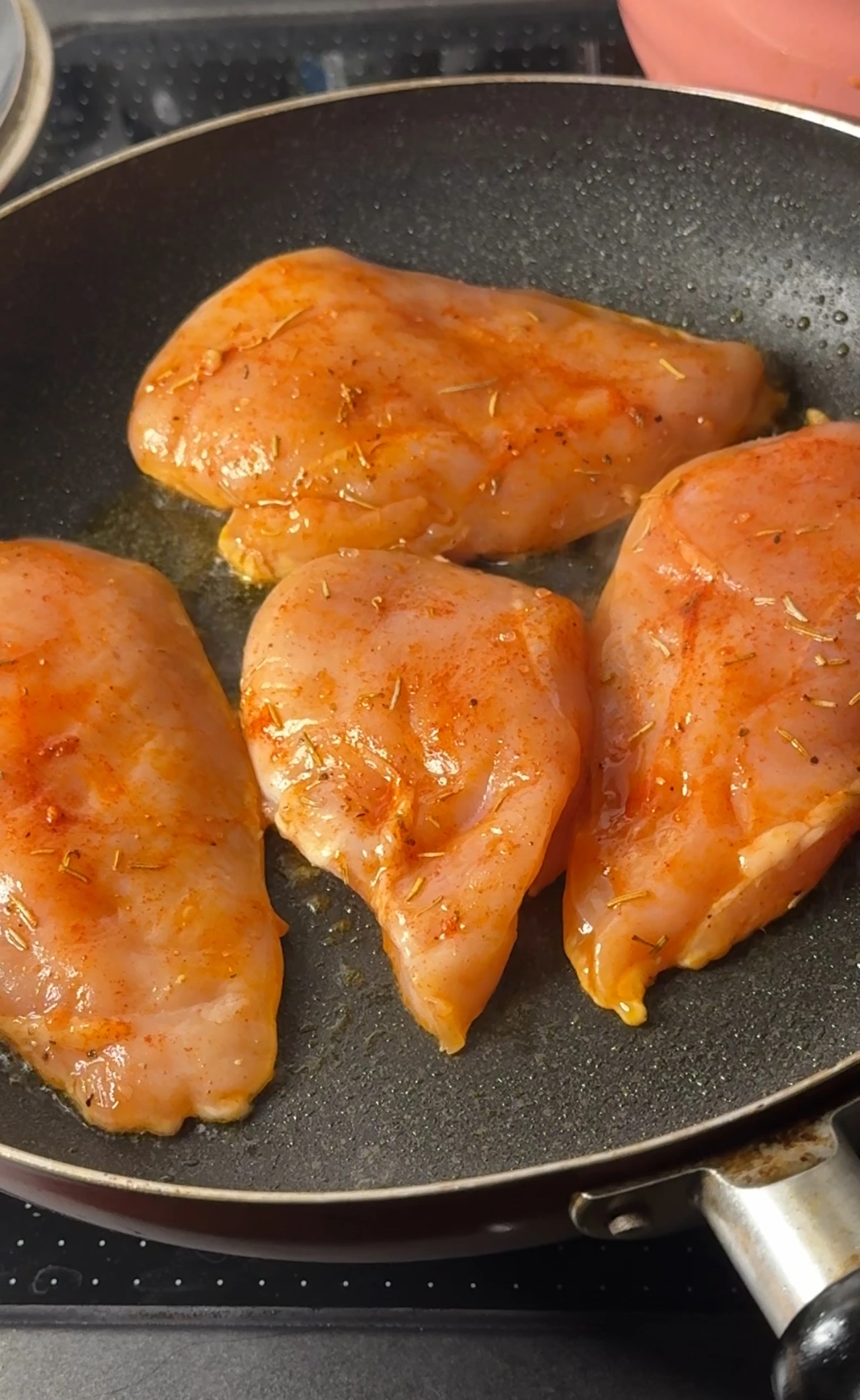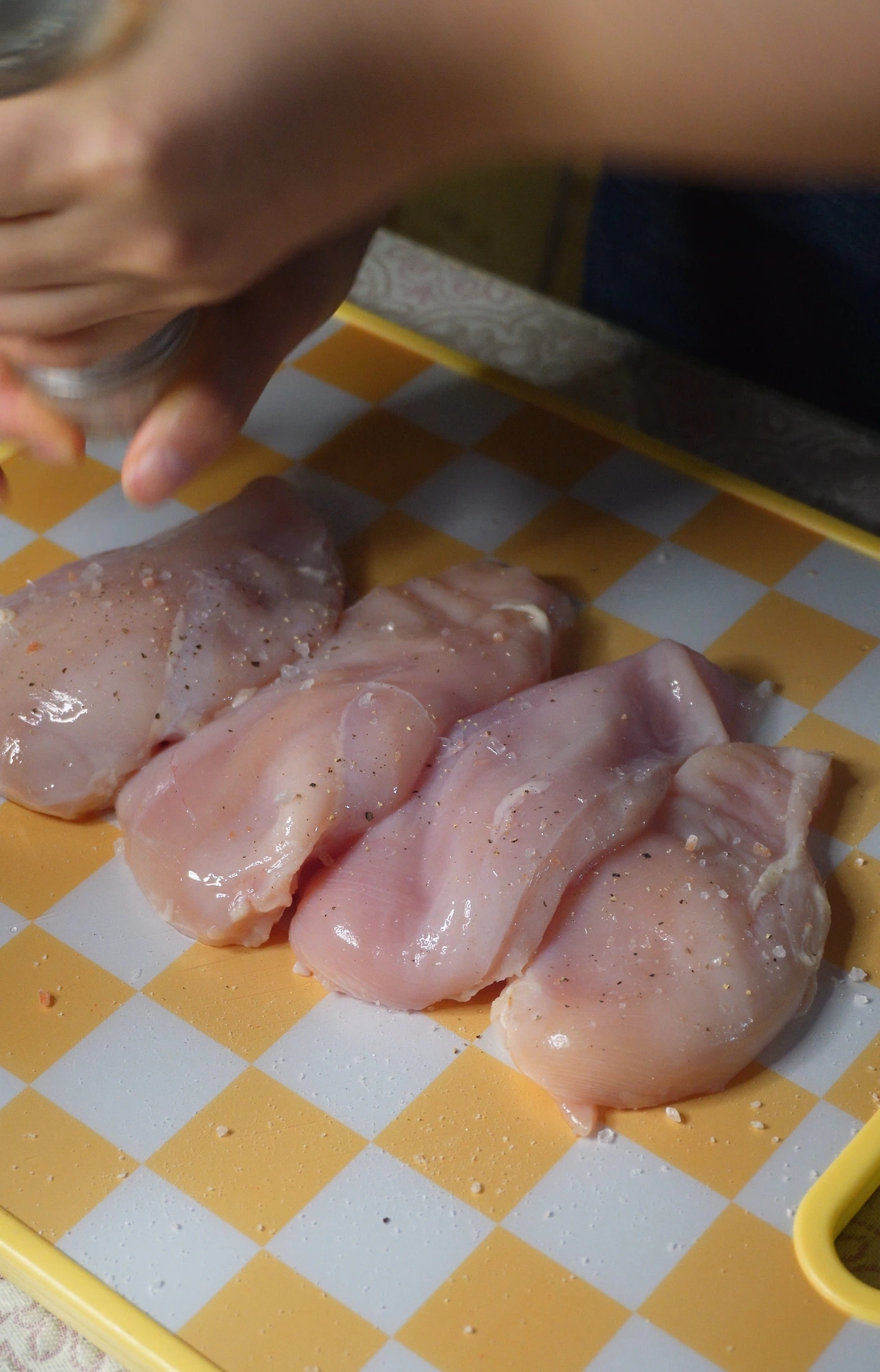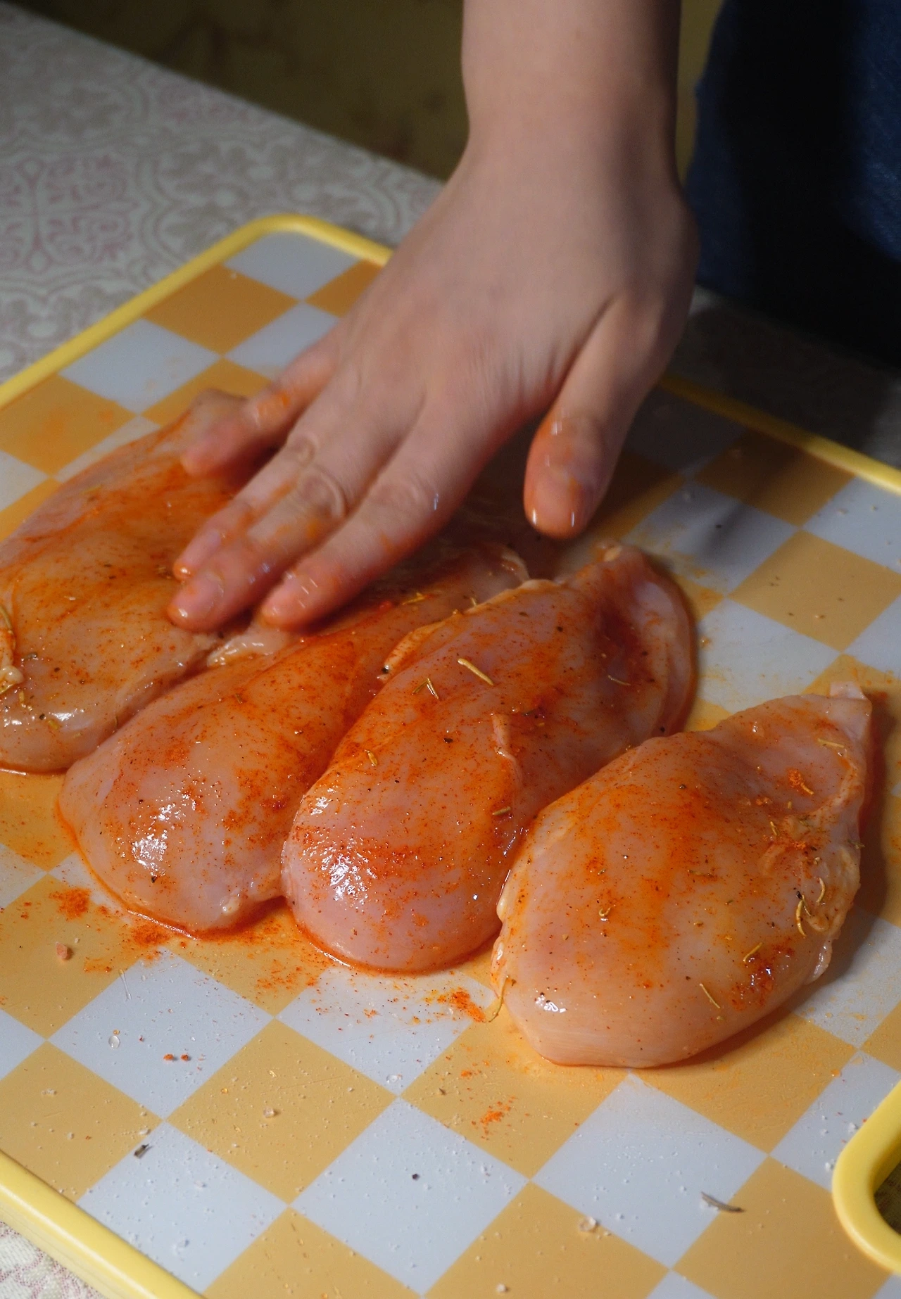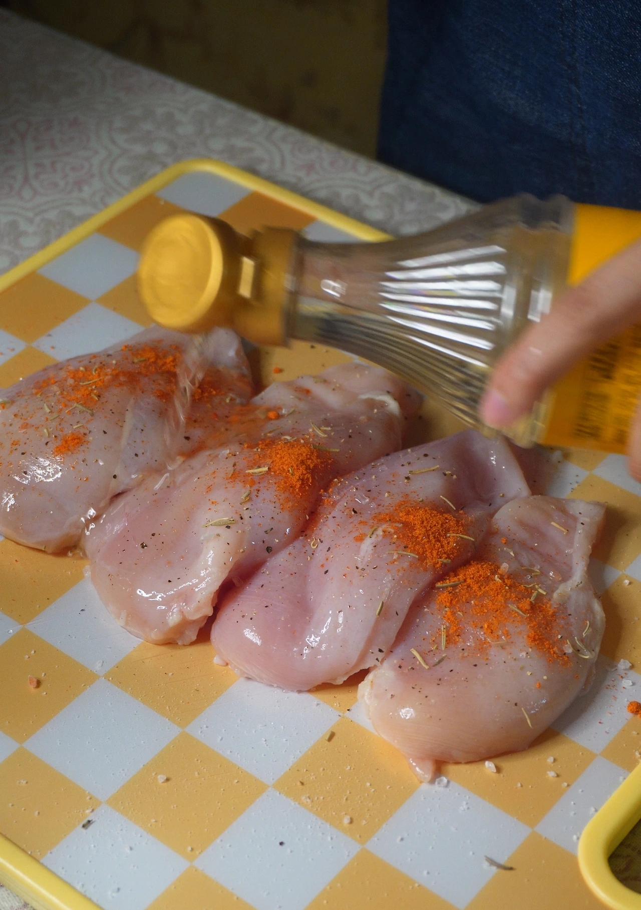 닭가슴살 두께에 따라 굽는 시간은 조절해 주세요.