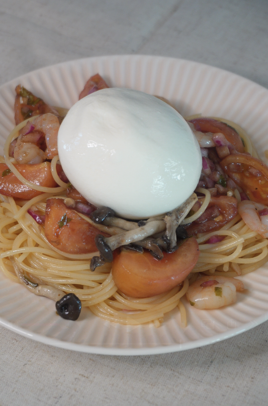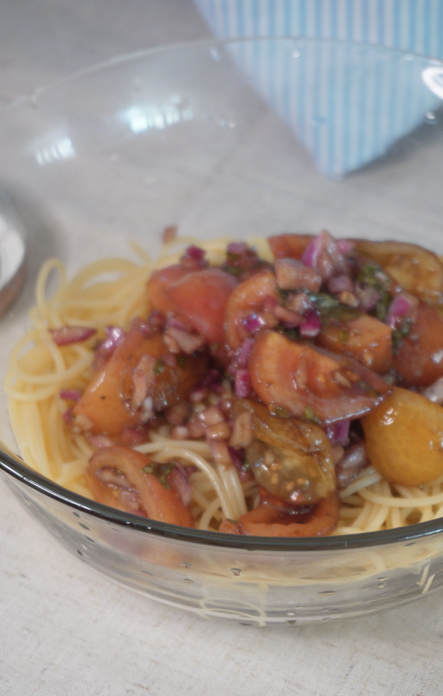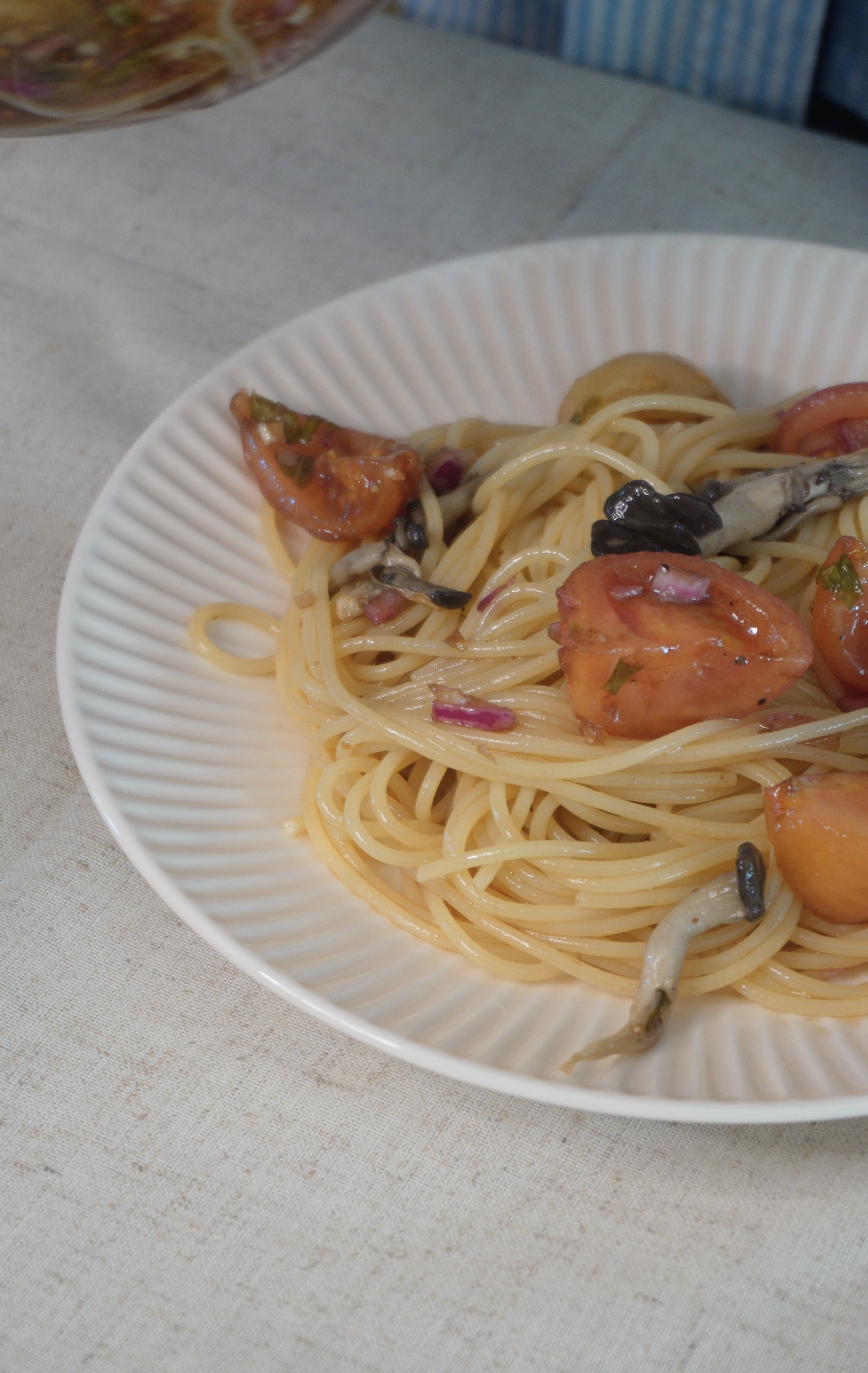 토마토 마리네이드를 활용해 냉파스타를 만들어 볼게요.