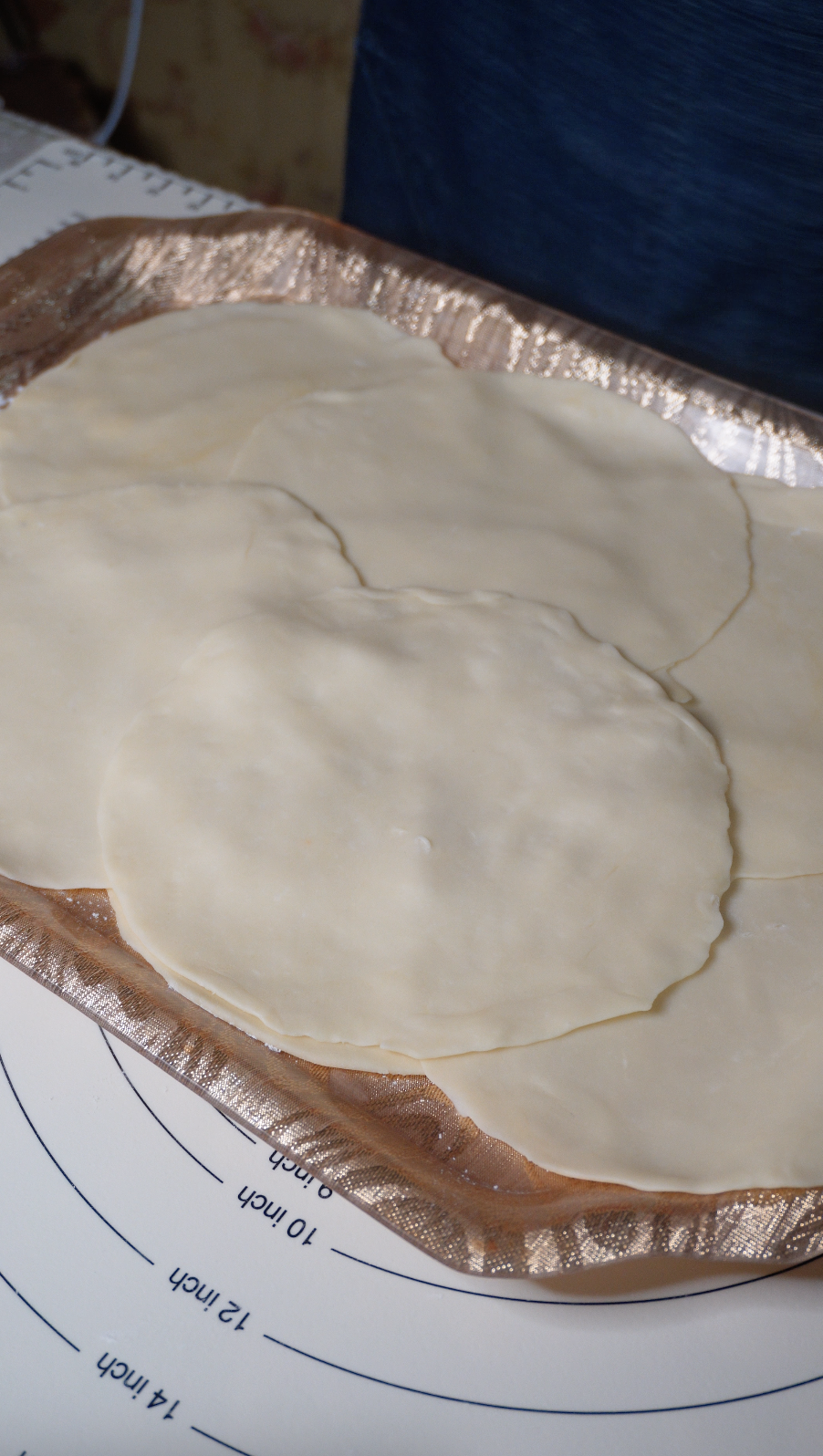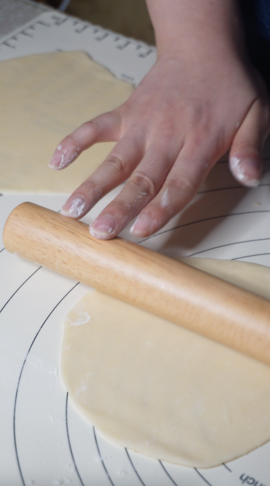 숙성이 끝난 반죽을 일정한 크기로 등분해 둥글린 뒤, 밀대로 얇게 밀어 동그란 원형을 만들어 주세요.