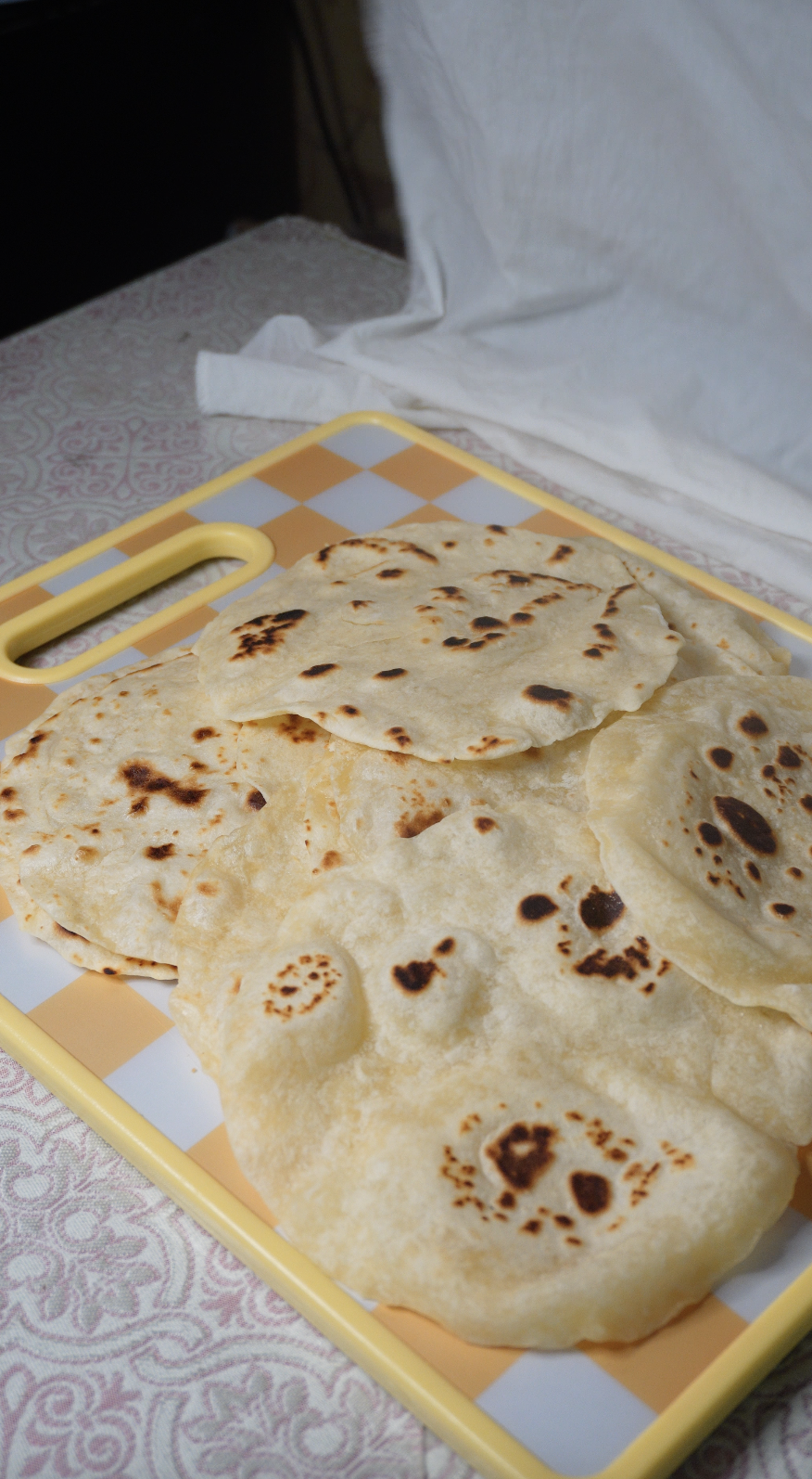 홈메이드 토르티야 완성! 다 구워진 토르티야는 먹기 전까지 물을 적신 면보로 덮어 촉촉함을 유지해 주세요.