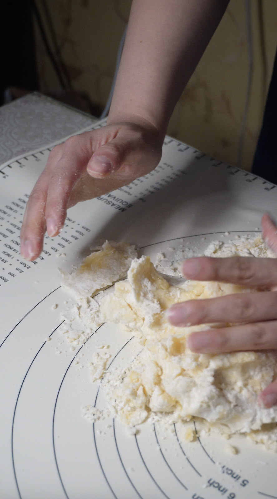 반죽이 어느 정도 뭉쳐지면 물을 조금씩 넣어 손으로 직접 치대기 시작해 주세요.