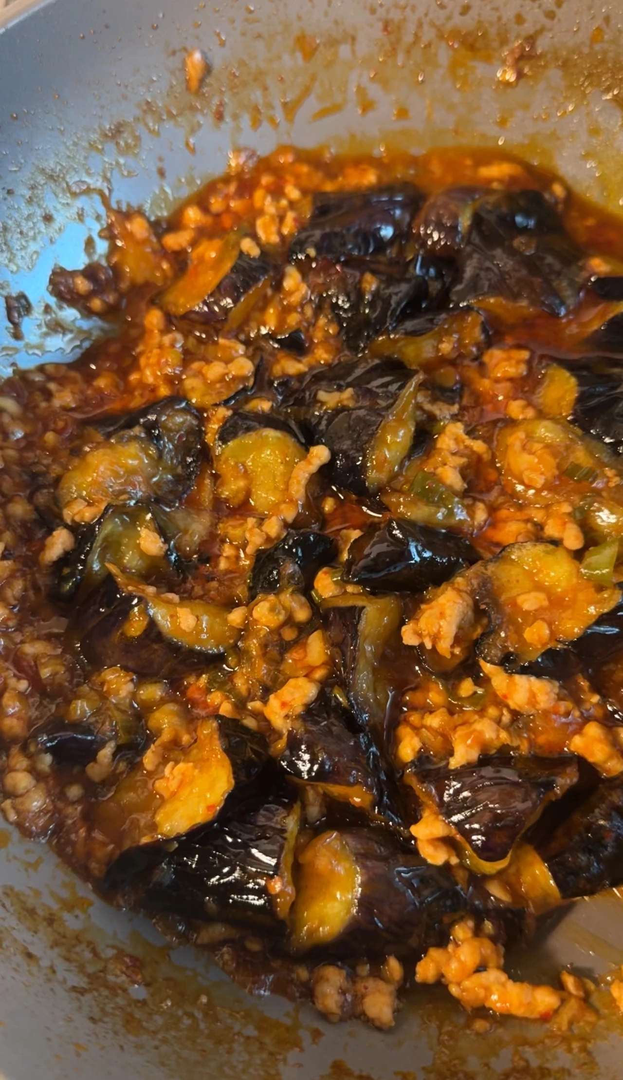 돼지고기 듬뿍 넣고 만든 어향가지...! 밥에 쓱쓱 비며 먹으면 그렇게 맛있을 수가 없다.