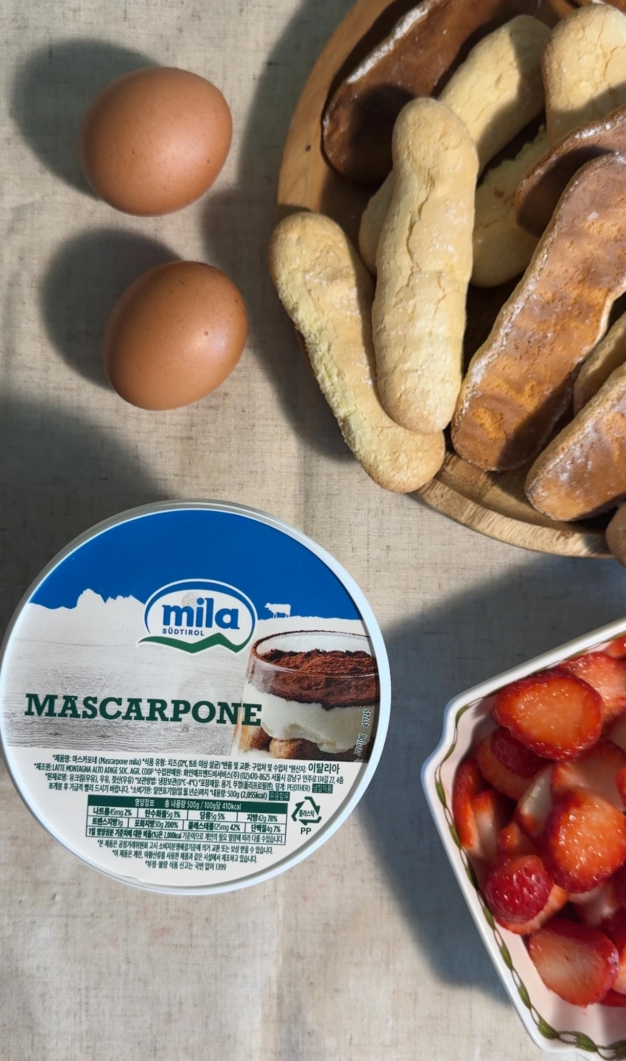 제철 맞은 딸기로 상큼 달달한 딸기 티라미수 만들기. 넓은 깍지가 없어 레이디 핑거 모양이 제멋대로 나왔지만 그래서 홈메이드의 매력이 살아나는 듯..?