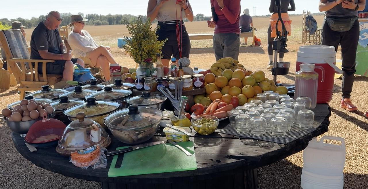 여기 있는 음식들은 기부금으로 이루어지는 순례자들을 위한 음식이다. 먹고 싶은 만큼 먹고 기부금을 내면 된다.