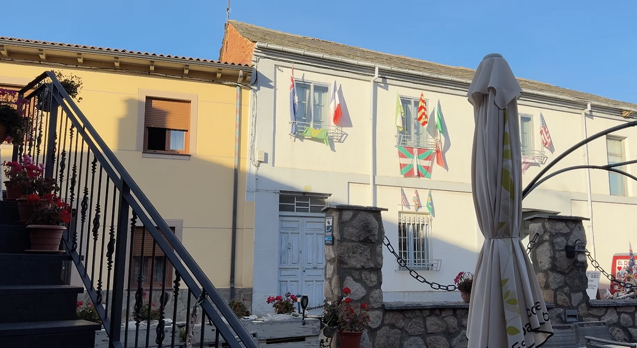 마을을 통과한다. 몇몇 순례자들은 이곳에서 아침을 먹고 있다.