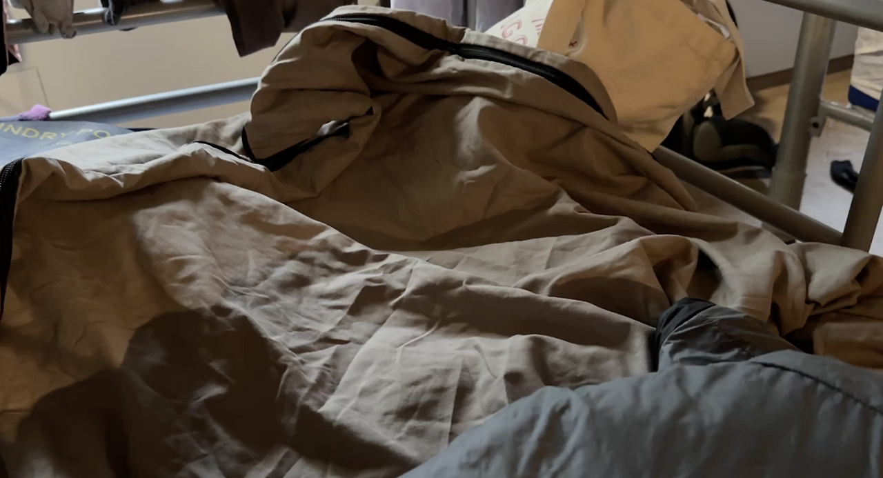오늘 침대에 침낭을 펴놓고 필요한 물건들을 꺼낸다.